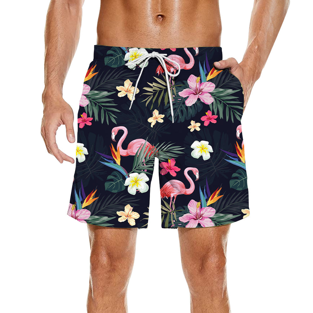 (Tax Included) Men's Beach Shorts Floral And Flamingo Print Soft Breathable Customizable Faces