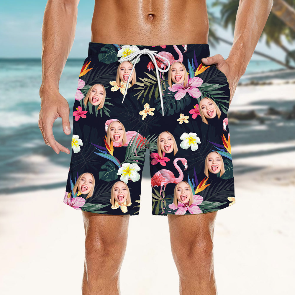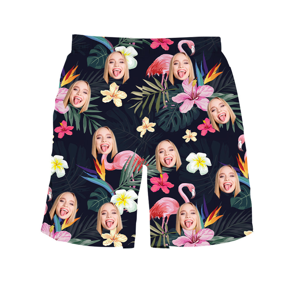 - Either to get a smile out of you or to use every day, you are going to love our custom beach shorts with photo. They are made with the best material and super soft you will enjoy wearing. Customize your beach shorts with your favorite photo face and make the perfect gift! Make the perfect beach shorts for family and friends that they will never forget about.