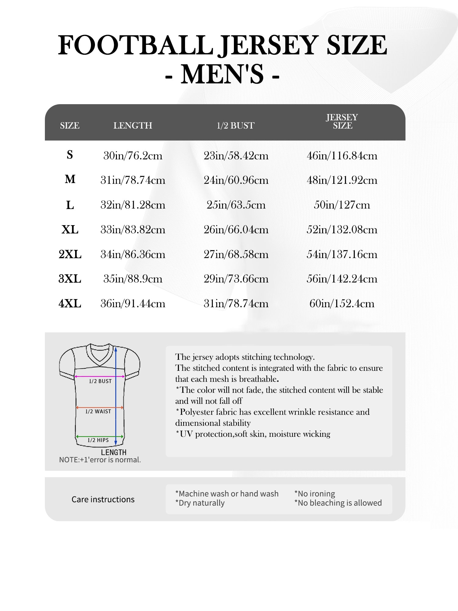 These jerseys are perfect for any football enthusiast. Whether you're gifting a friend, a partner, a parent, or a child, they make a thoughtful present that shows you care. You can even wear it yourself as your “battle jersey” on game day!
