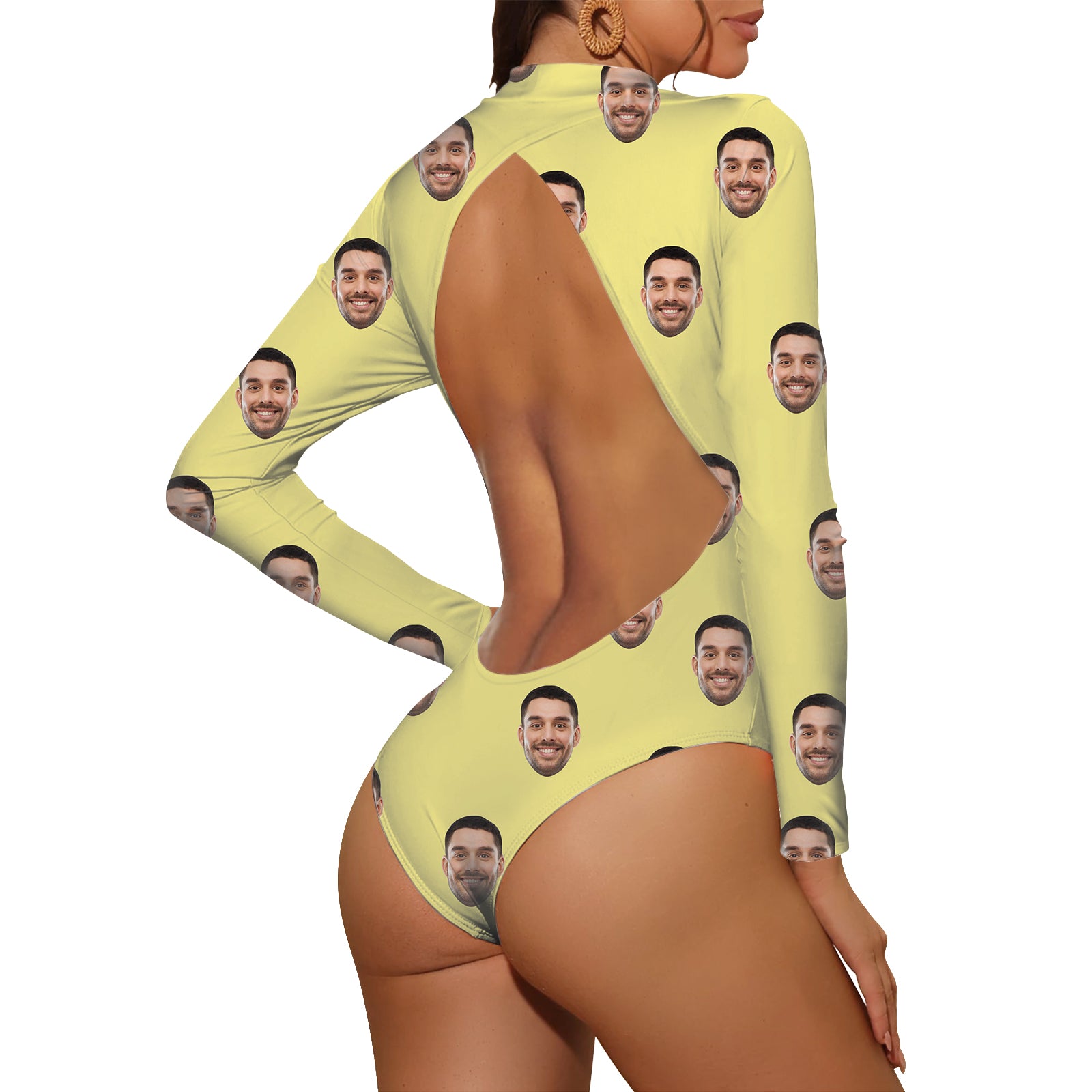 (Tax Included) Multi-Color One Piece Personalized Swimsuit with Printed Boyfriend's Face Backless Bathing Suit Slim-Fitting Top