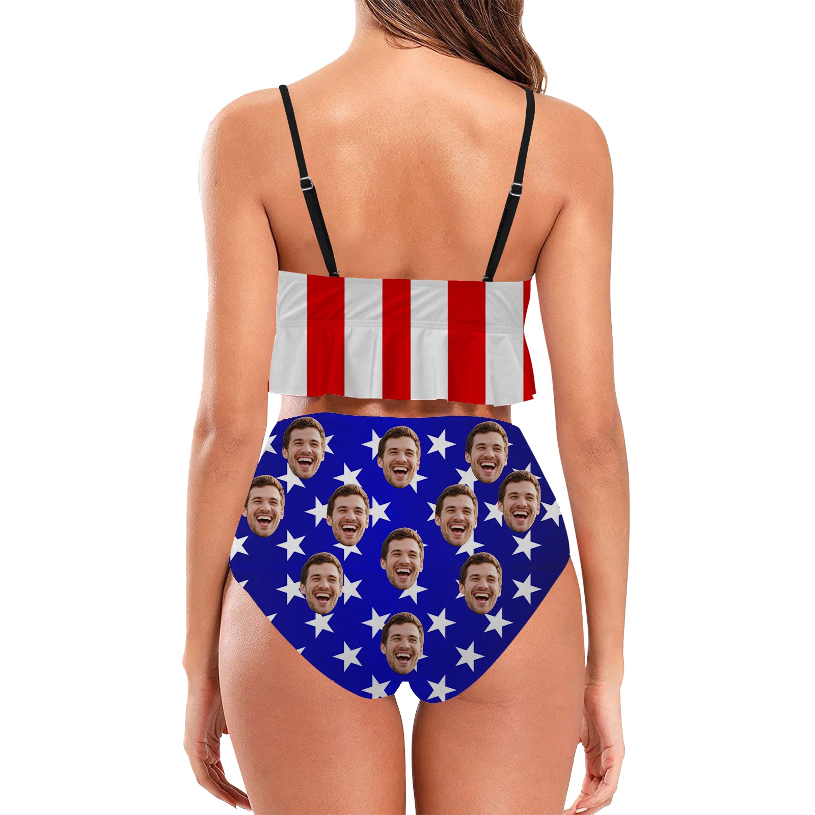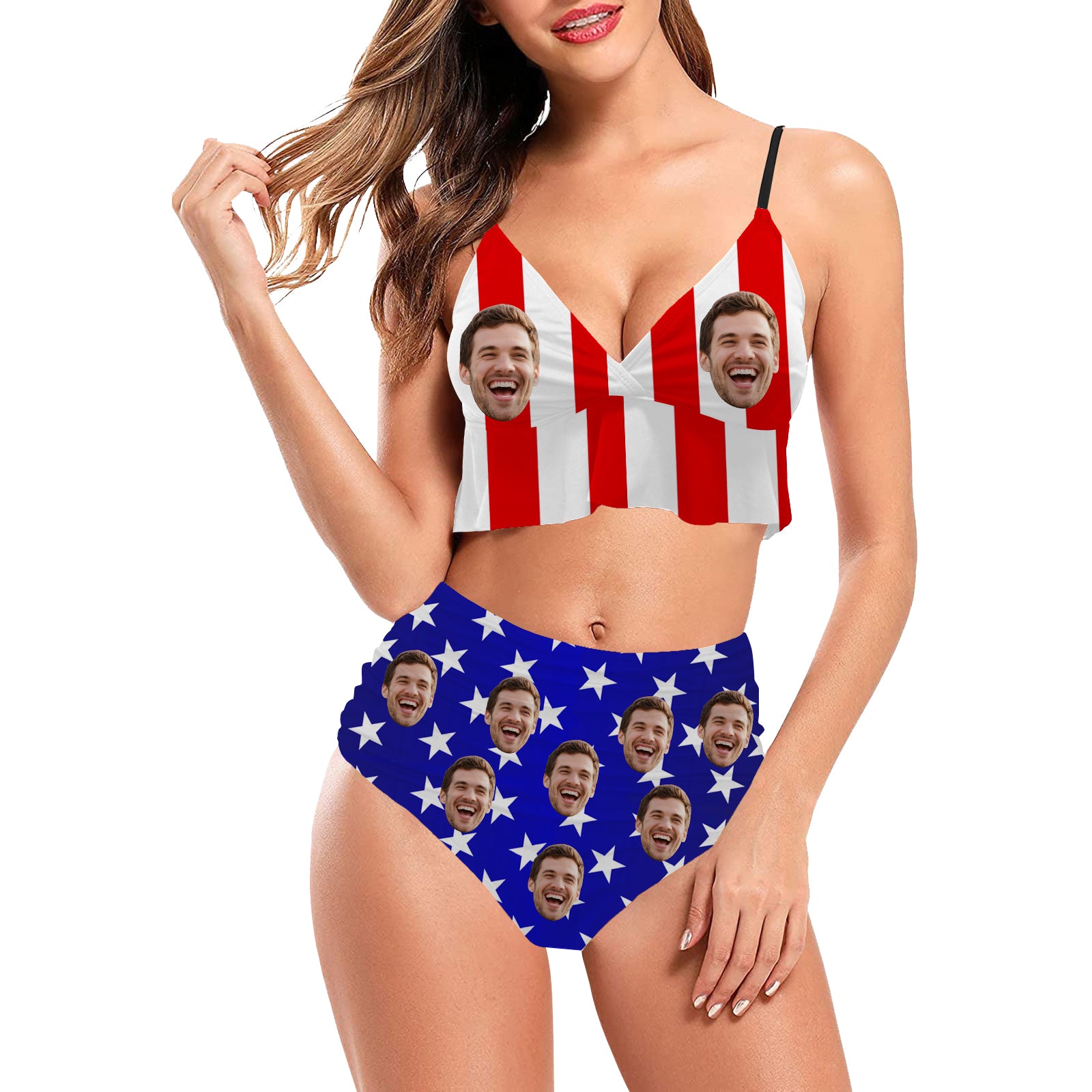 (Tax Included) Patriotic Custom Face High-Waist Bikini Swimsuit For Holiday Beach Getaways