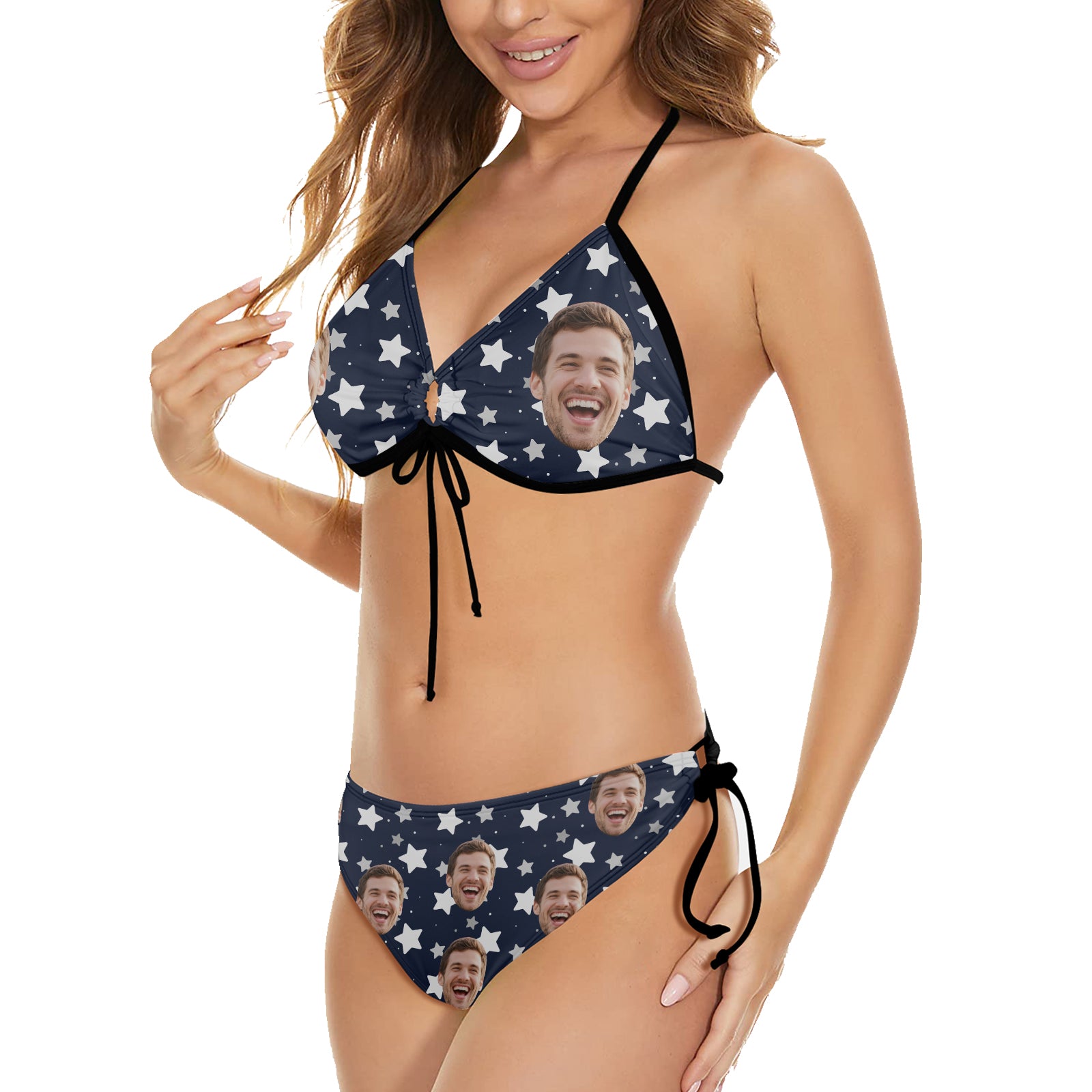(Tax Included) Patriotic Custom Face Swimsuit With Star Patterns For 4th Of July Pool Parties