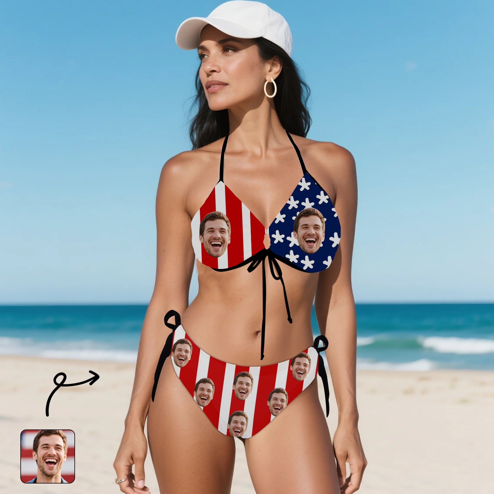 (Tax Included) Personalized Custom Face American Flag Swimsuit For Summer Vacation Celebrations