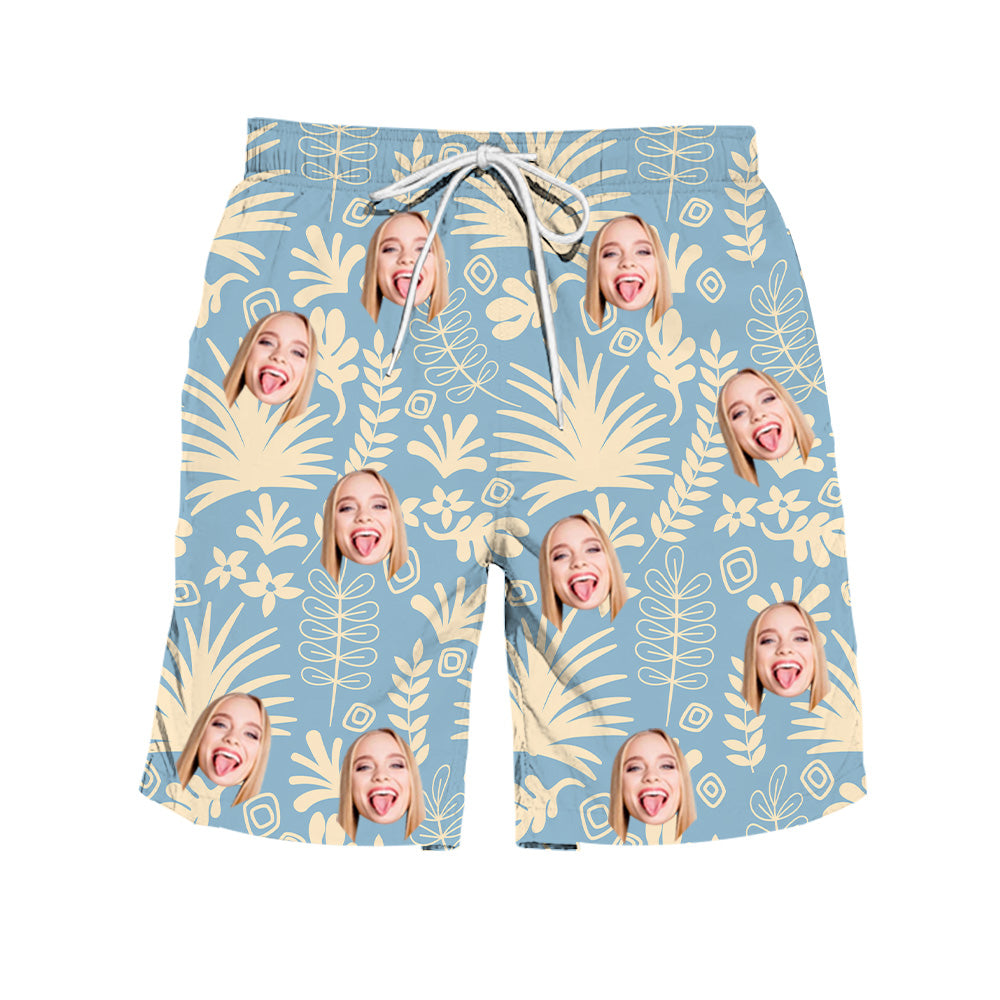 - Either to get a smile out of you or to use every day, you are going to love our custom beach shorts with photo. They are made with the best material and super soft you will enjoy wearing. Customize your beach shorts with your favorite photo face and make the perfect gift! Make the perfect beach shorts for family and friends that they will never forget about.