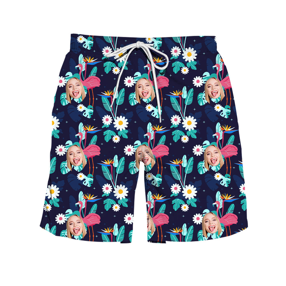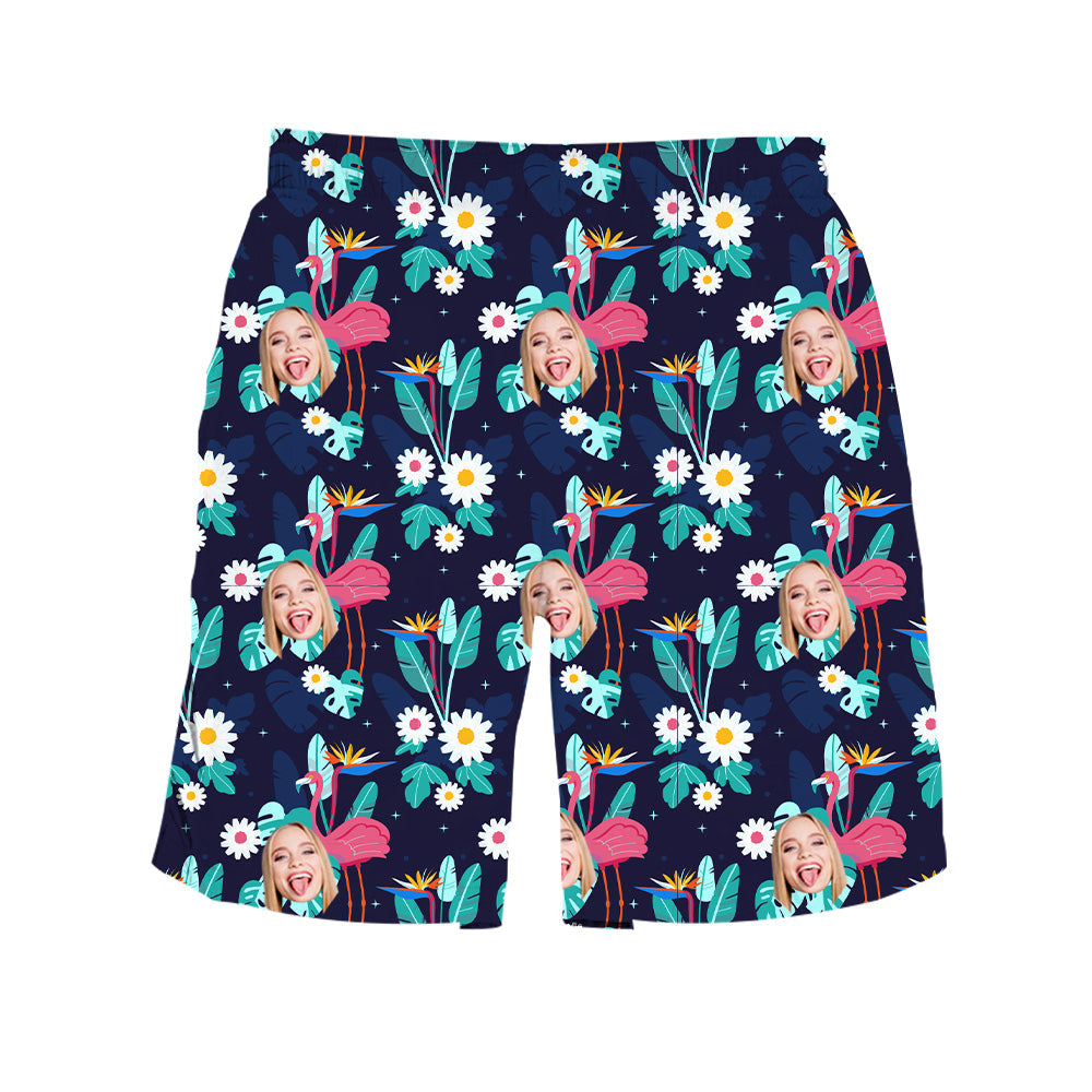 - Either to get a smile out of you or to use every day, you are going to love our custom beach shorts with photo. They are made with the best material and super soft you will enjoy wearing. Customize your beach shorts with your favorite photo face and make the perfect gift! Make the perfect beach shorts for family and friends that they will never forget about.