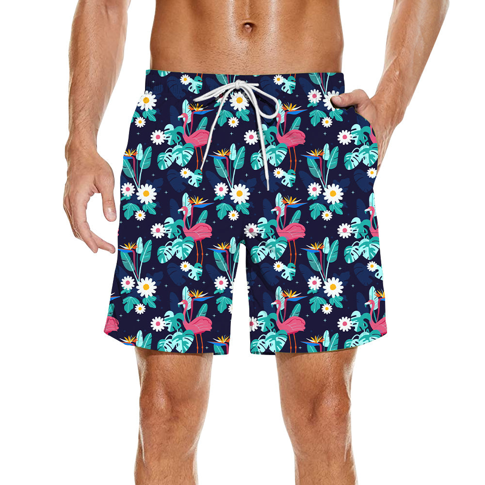 (Tax Included) Personalized Custom Face Flamingo & Daisy Beach Shorts For Outings