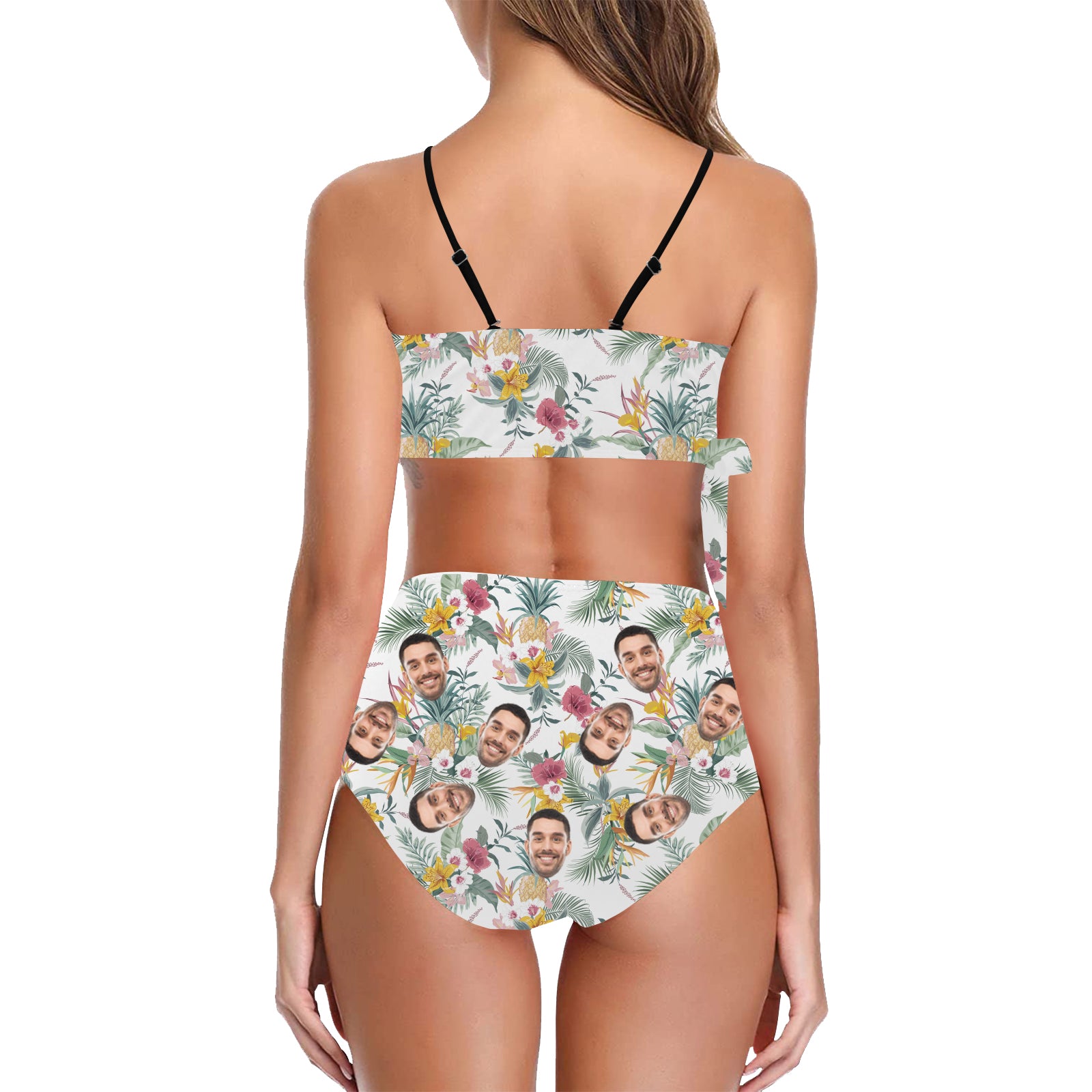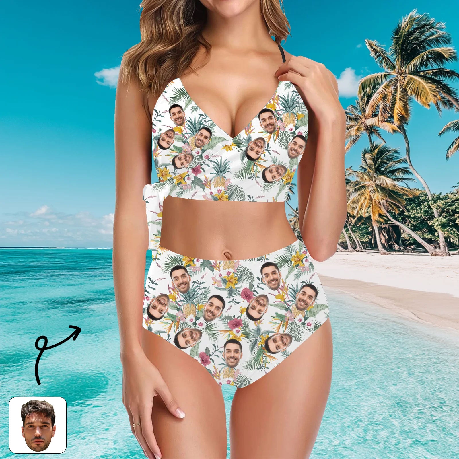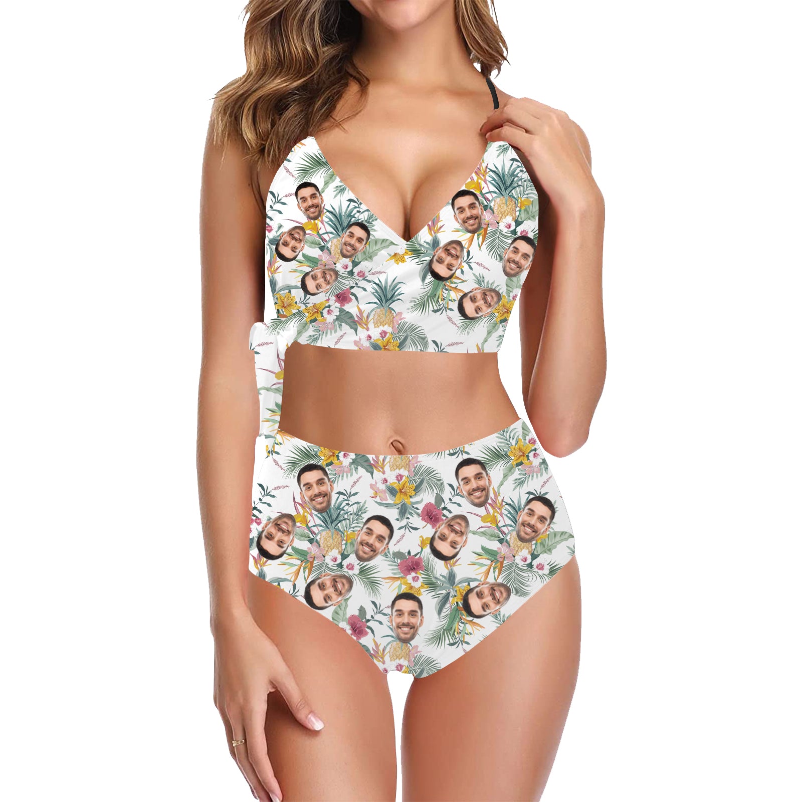 (Tax Included) Playful Cheeky Floral Bikini Set Custom Face Sexy Plus Size Swimwear Beach Vacation Look Quick Dry Fabric