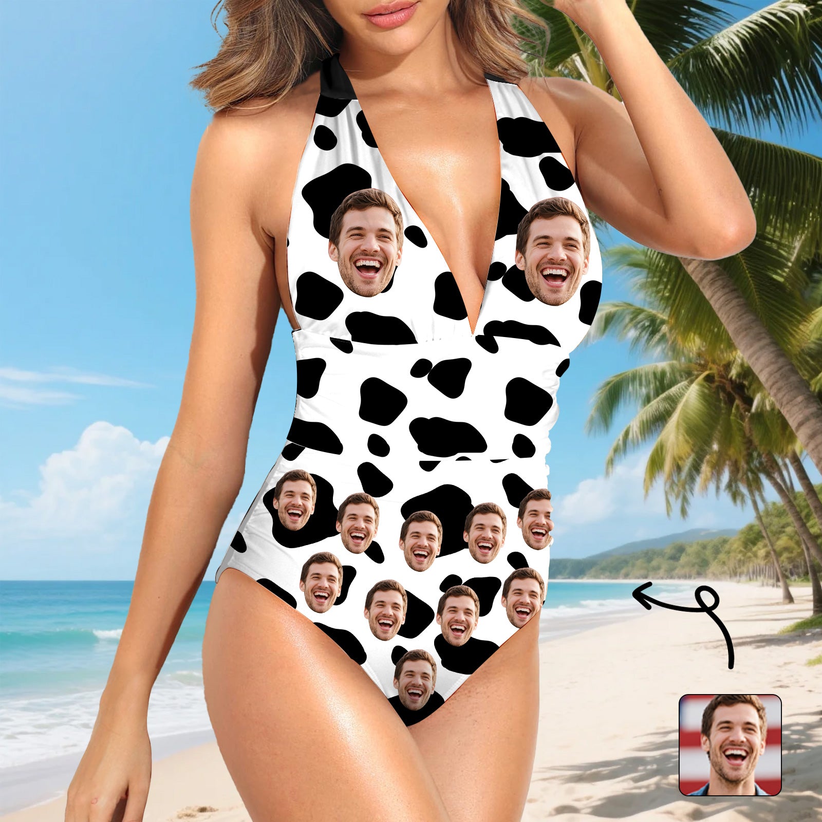 (Tax Included) Playful Cow Print Swimsuit With Personalized Custom Face Design