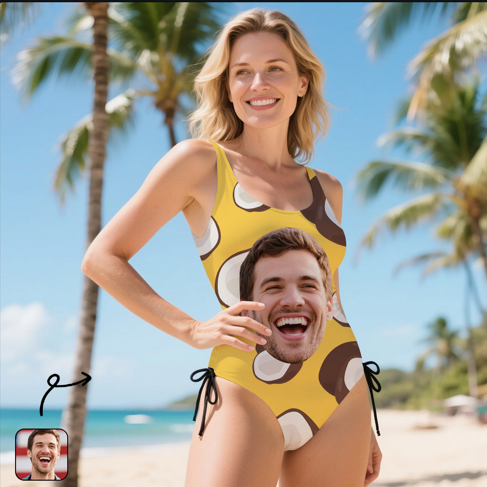 (Tax Included) Tropical Coconut Print One-Piece With Custom Face - Ultimate Party Essential