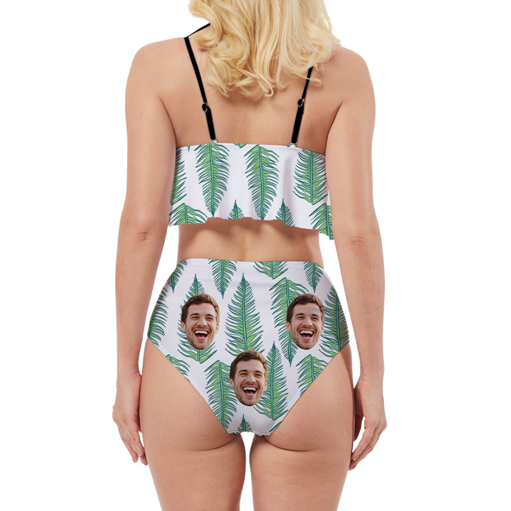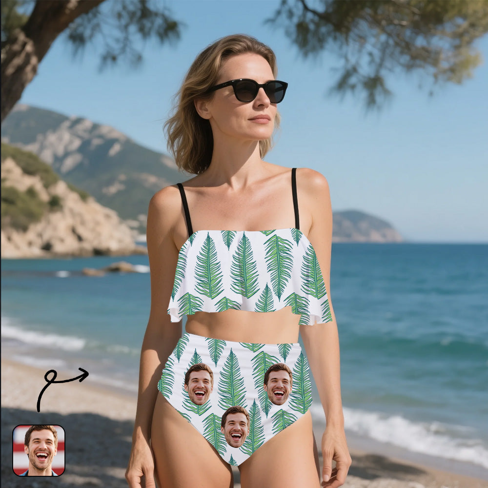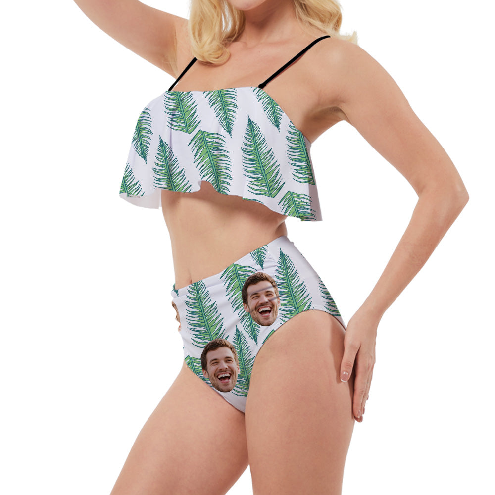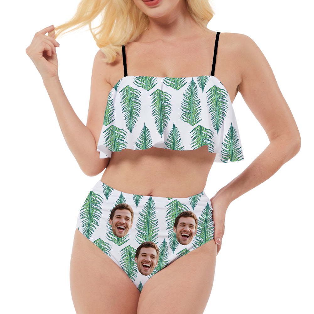 (Tax Included) Tropical Frill Bikini Set With Custom Face & Ruffled