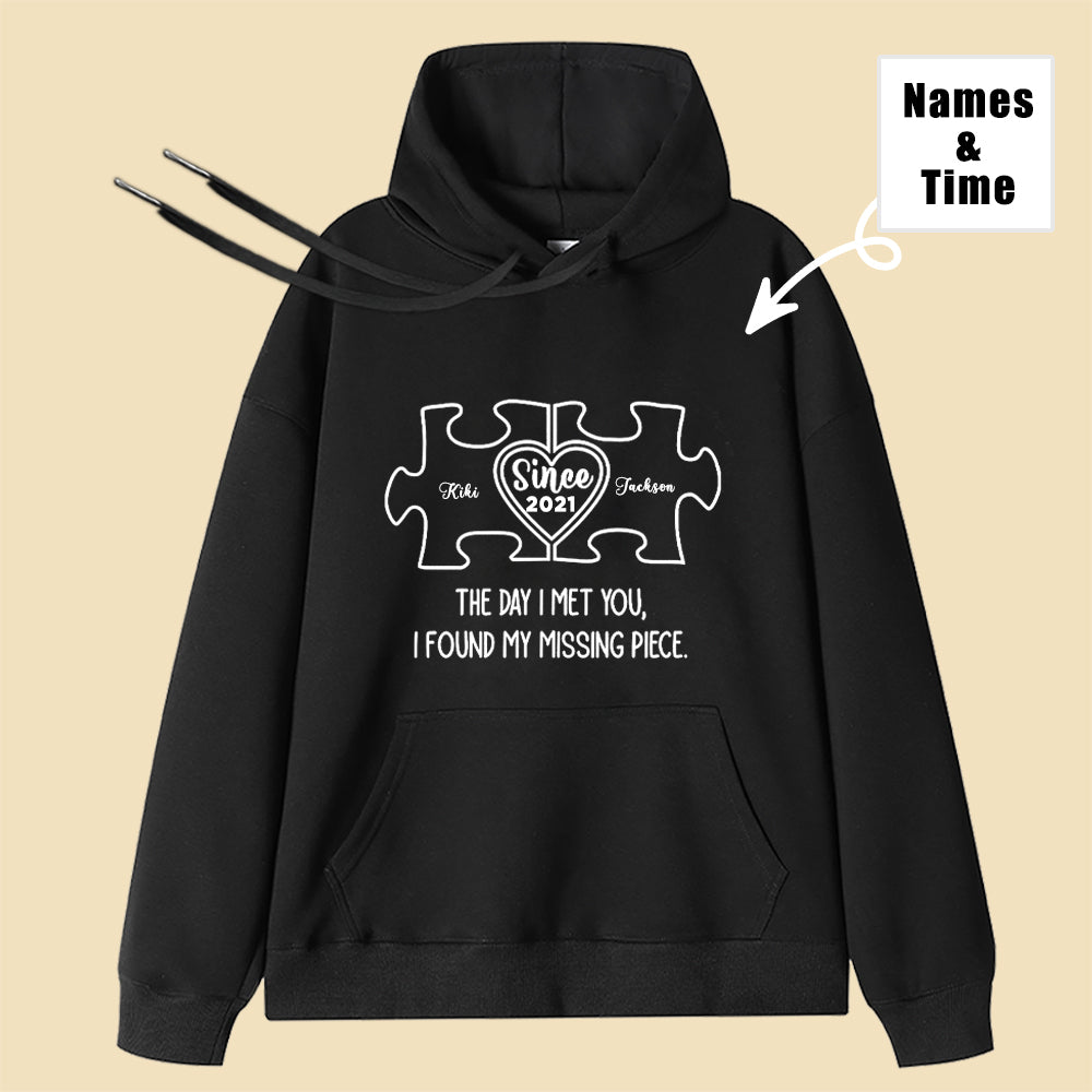 The Day I Met You, I Found My Missing Piece Couple Custom Hoodie