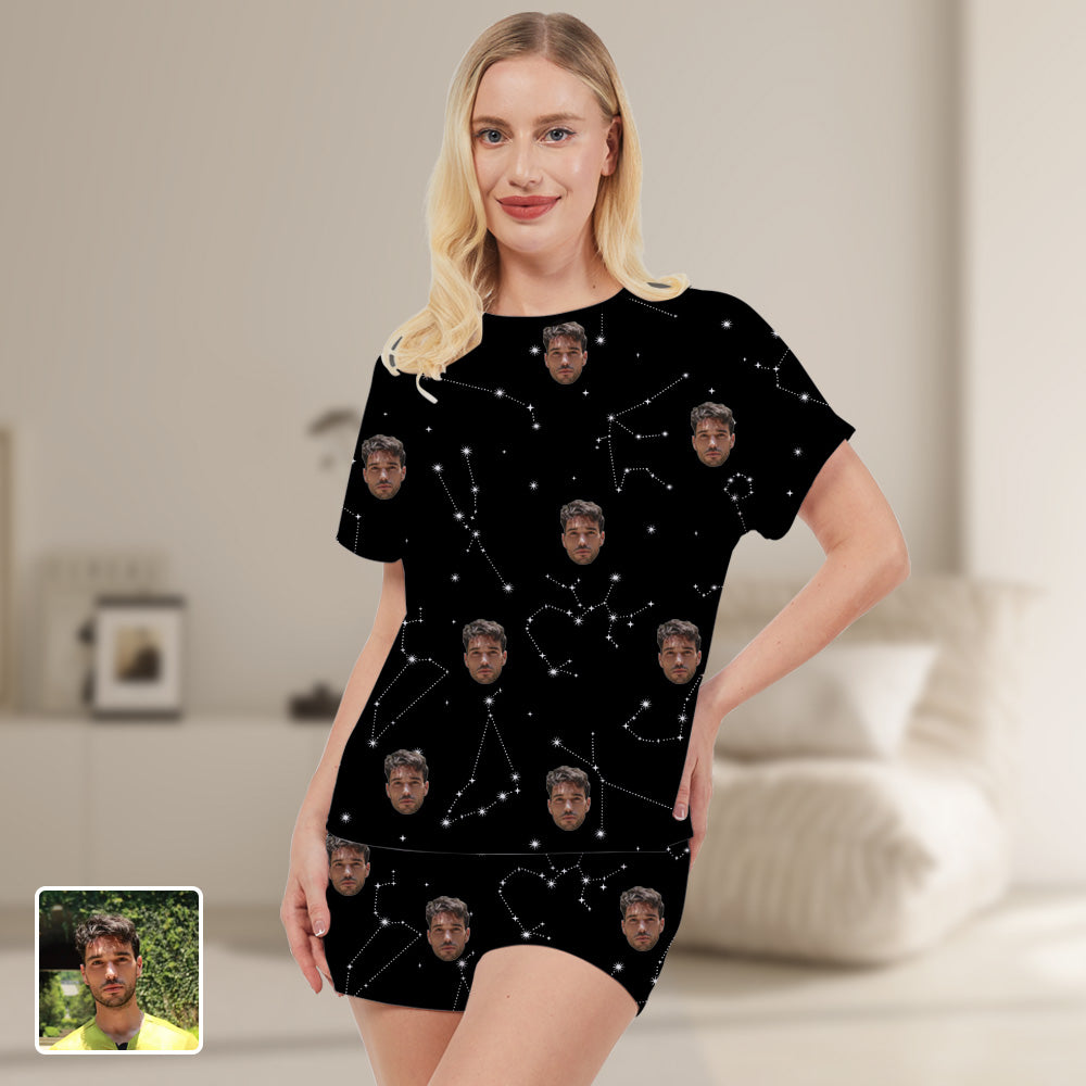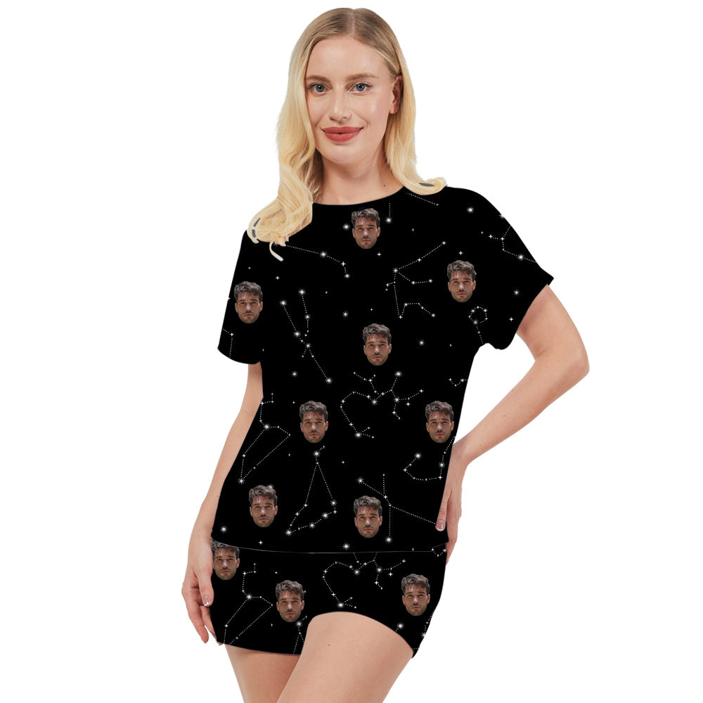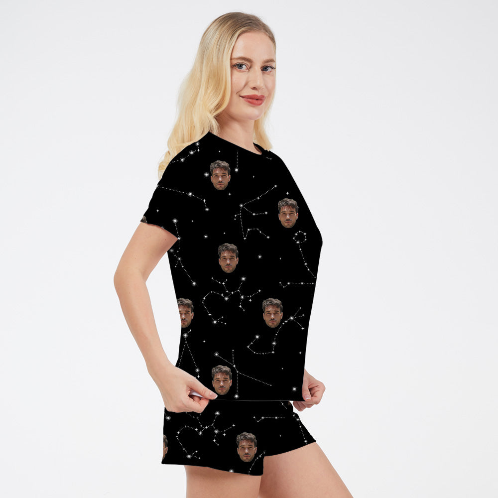 Conjunto de pijama de mujer negro de manga corta y pantalones cortos Constellation Lovers