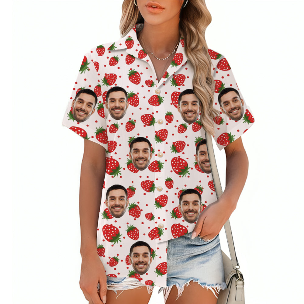 Women's Hawaiian Shirts Custom Tops Strawberry Print Casual Summer Fashion