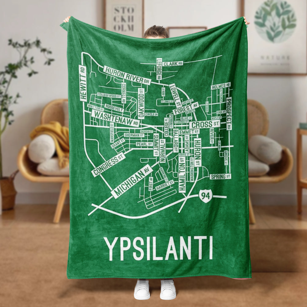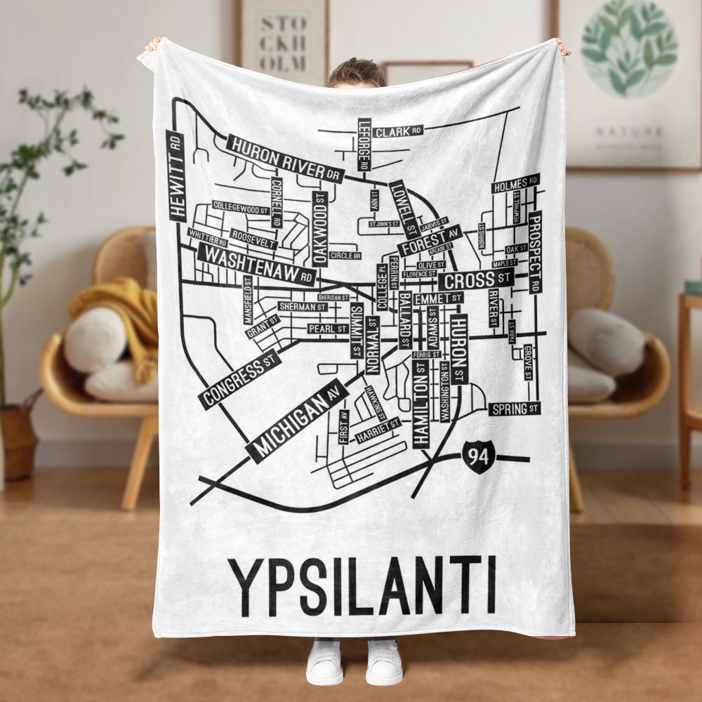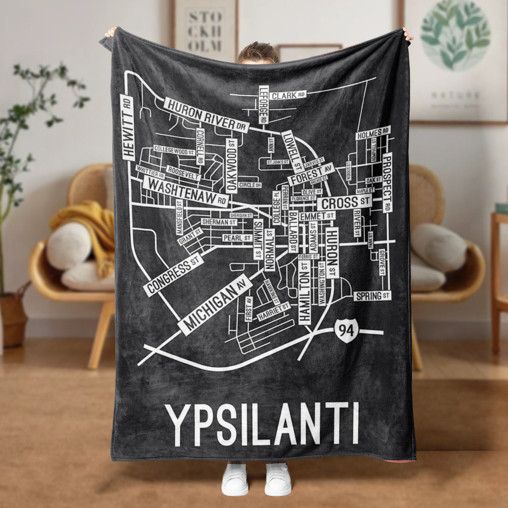 Ypsilanti, Michigan Street Map Blanket Freshmen/Graduates Memorial Gifts