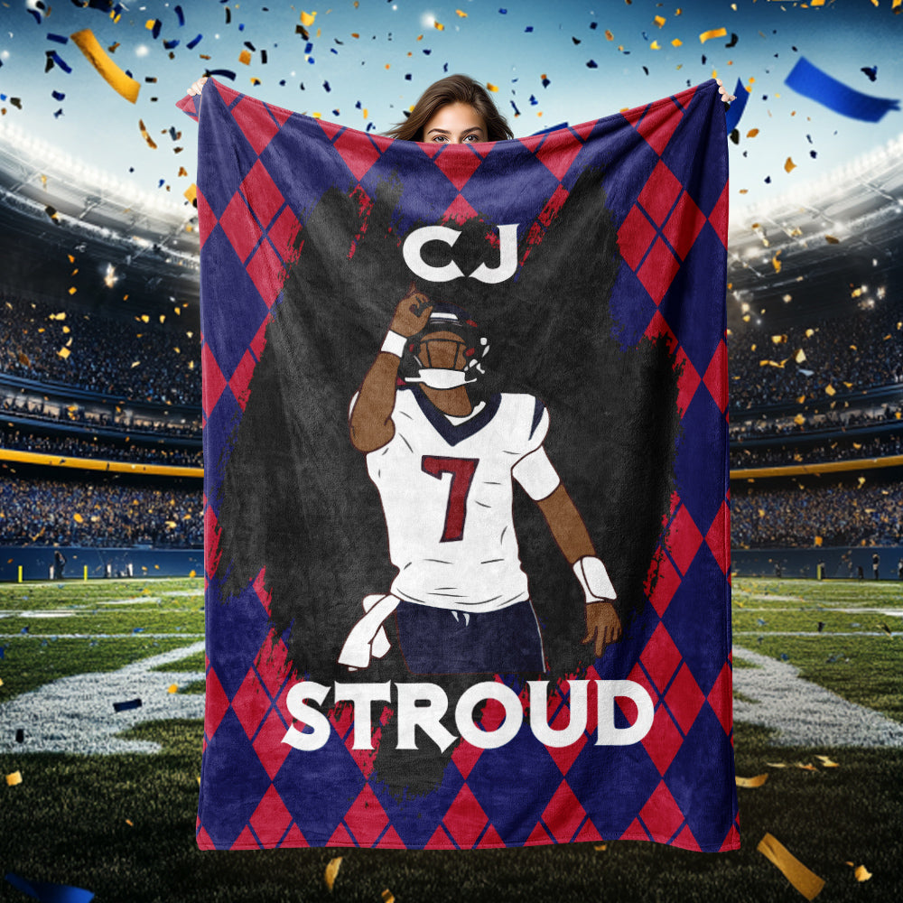 CJ Stroud Points to God Houston Texans Blanket Sherpa Blanket for Football Fans