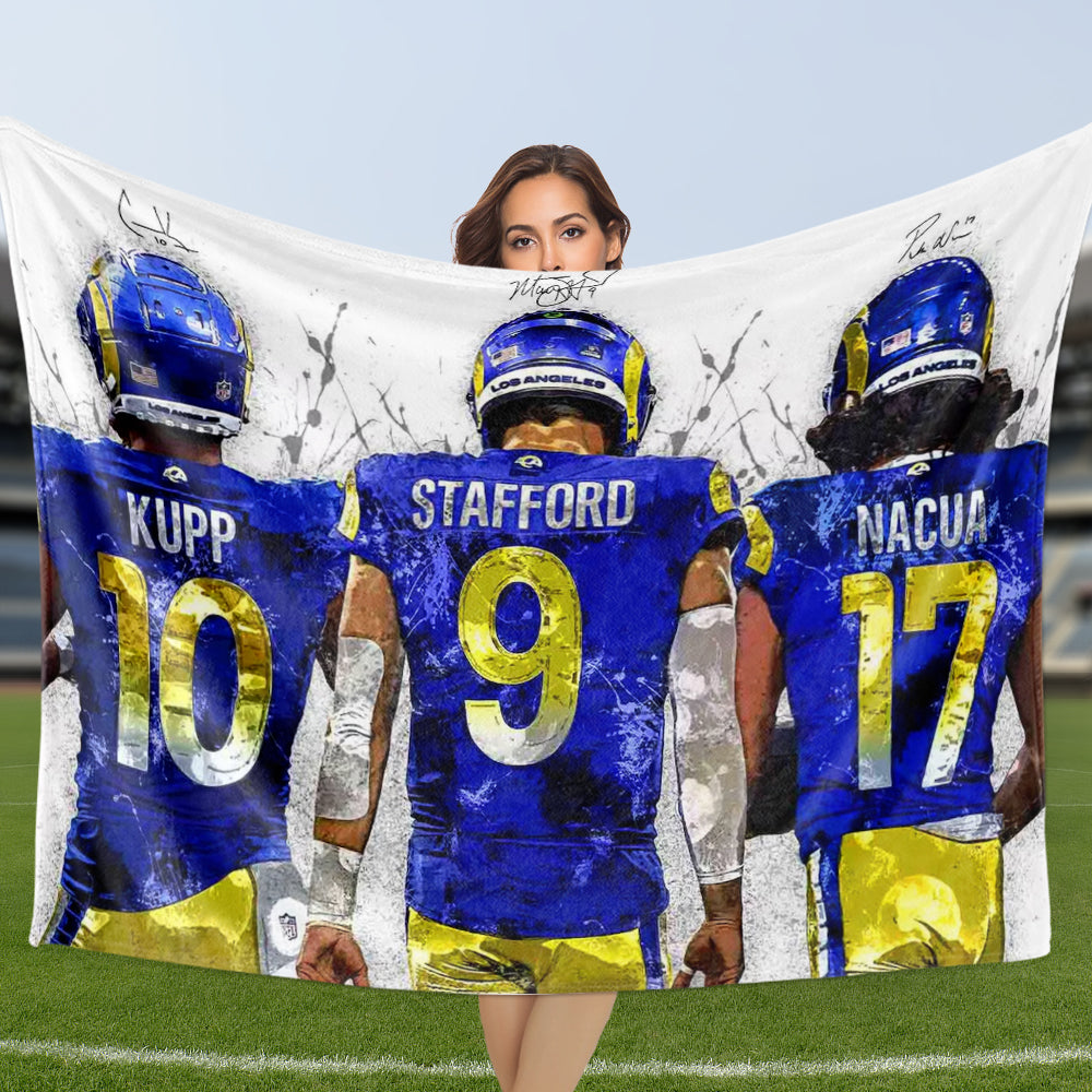 Football Blanket Matthew Stafford, Puka Nacua, Cooper Kupp, Los Angeles Rams Legendary Star Signature Print Valentine's Day Gift for Boyfriend Football Fans