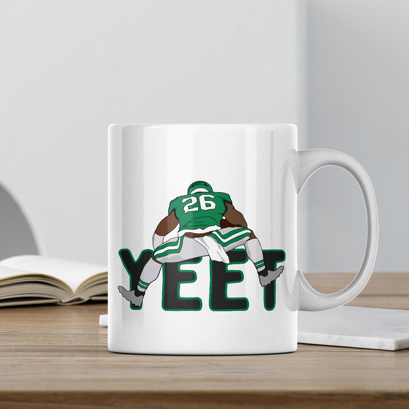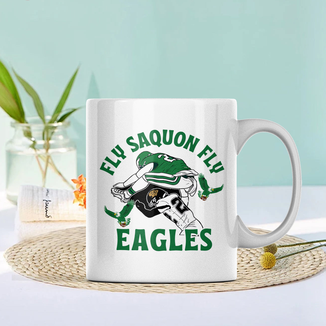 Saquon Barkley Hurdle Backwards Yeet Print 11oz Mug Touchdown Philadelphia Eagles Celebration Coffee Cup Gift