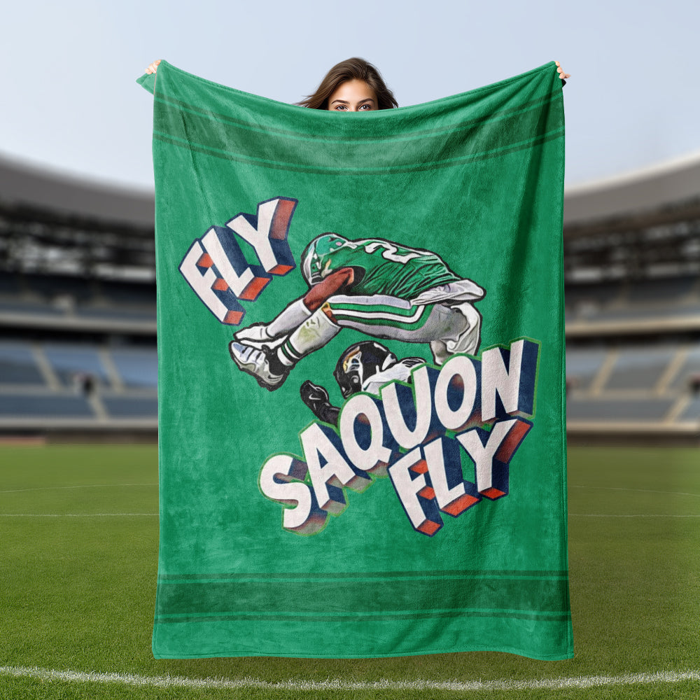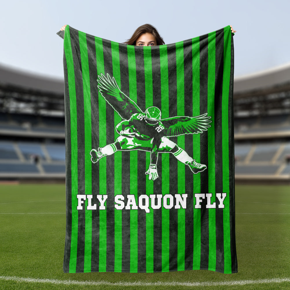Football Blanket Fly Saquon Barkley Eagles Fly Reverse Hurdle The Birds Fans Sherpa Blanket Nap Blanket for Boyfriend Father Son