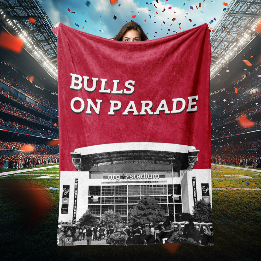4FunGift Houston Stadium Skyline Bulls on Parade Print Blanket Football Stadium Sherpa Blanket