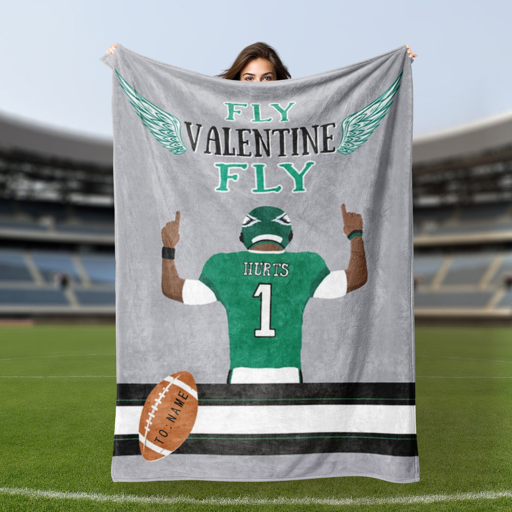 Fly Eagles Fly Valentine Personalized Blanket Custon Name Philadelphia Eagles Football Fans Gift for Boyfriend/Girlfriend