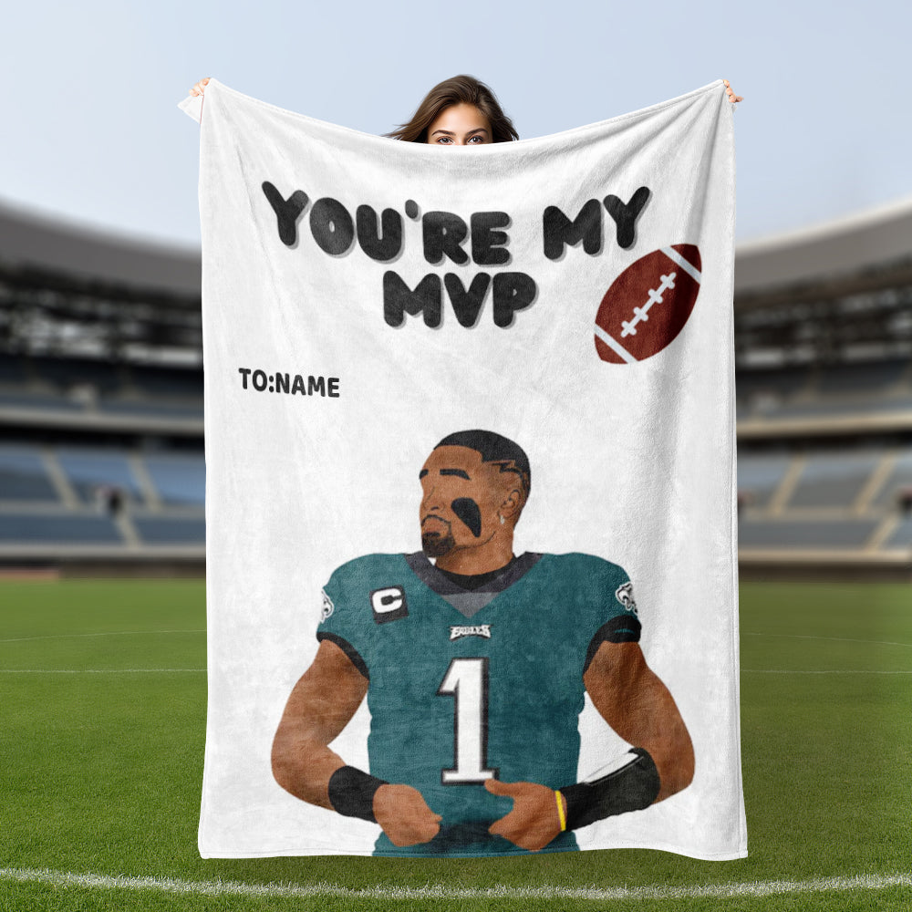 Jalen Hurts You're My MVP Print Personalized Blanket Valentines Day Gift for Philadelphia Eagles Football Fans for Boyfriend/Girlfriend