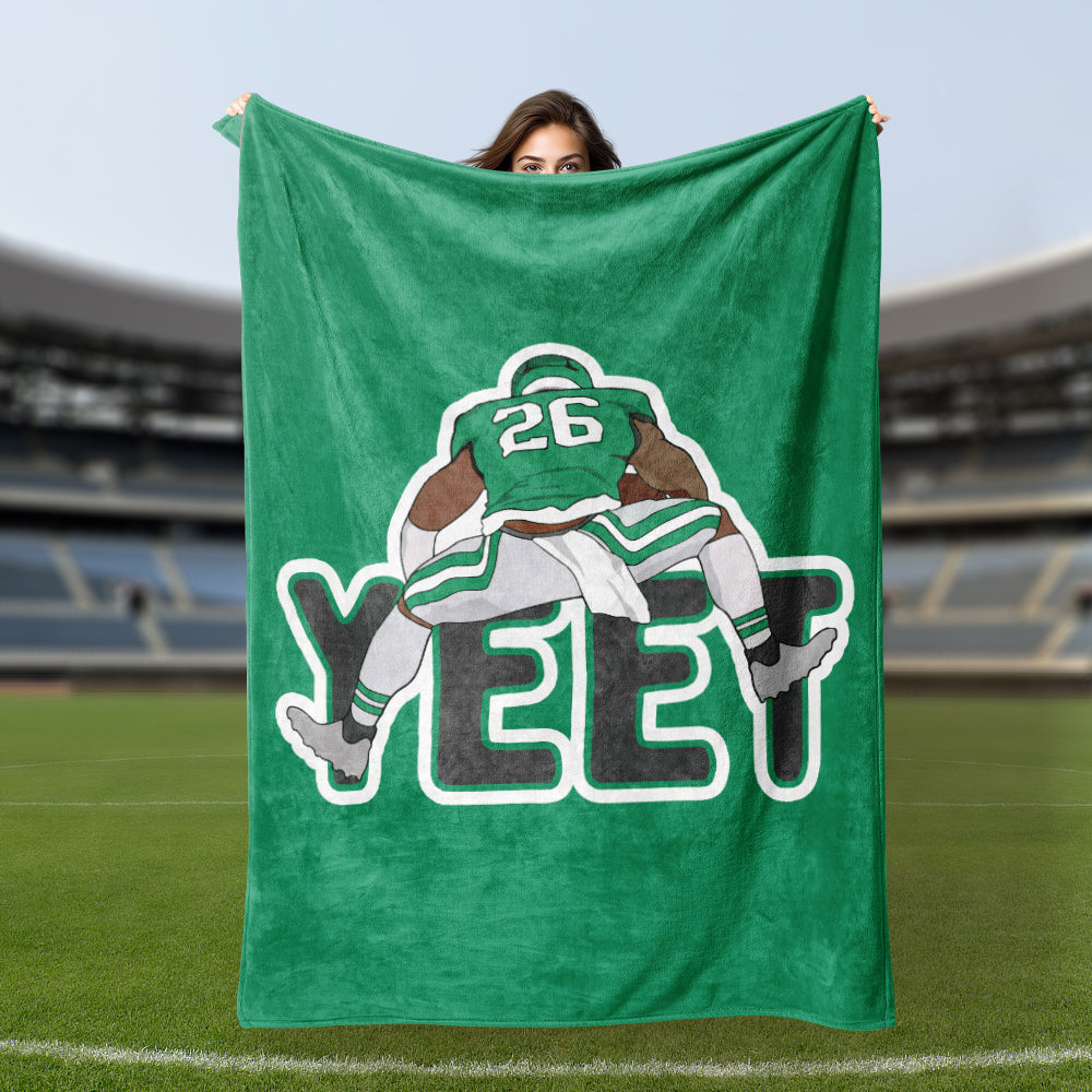Saquon Barkley Blanket Hurdle Backwards Yeet Touchdown Celebration Philadelphia Eagles Football Fans Gift Nap Blanket