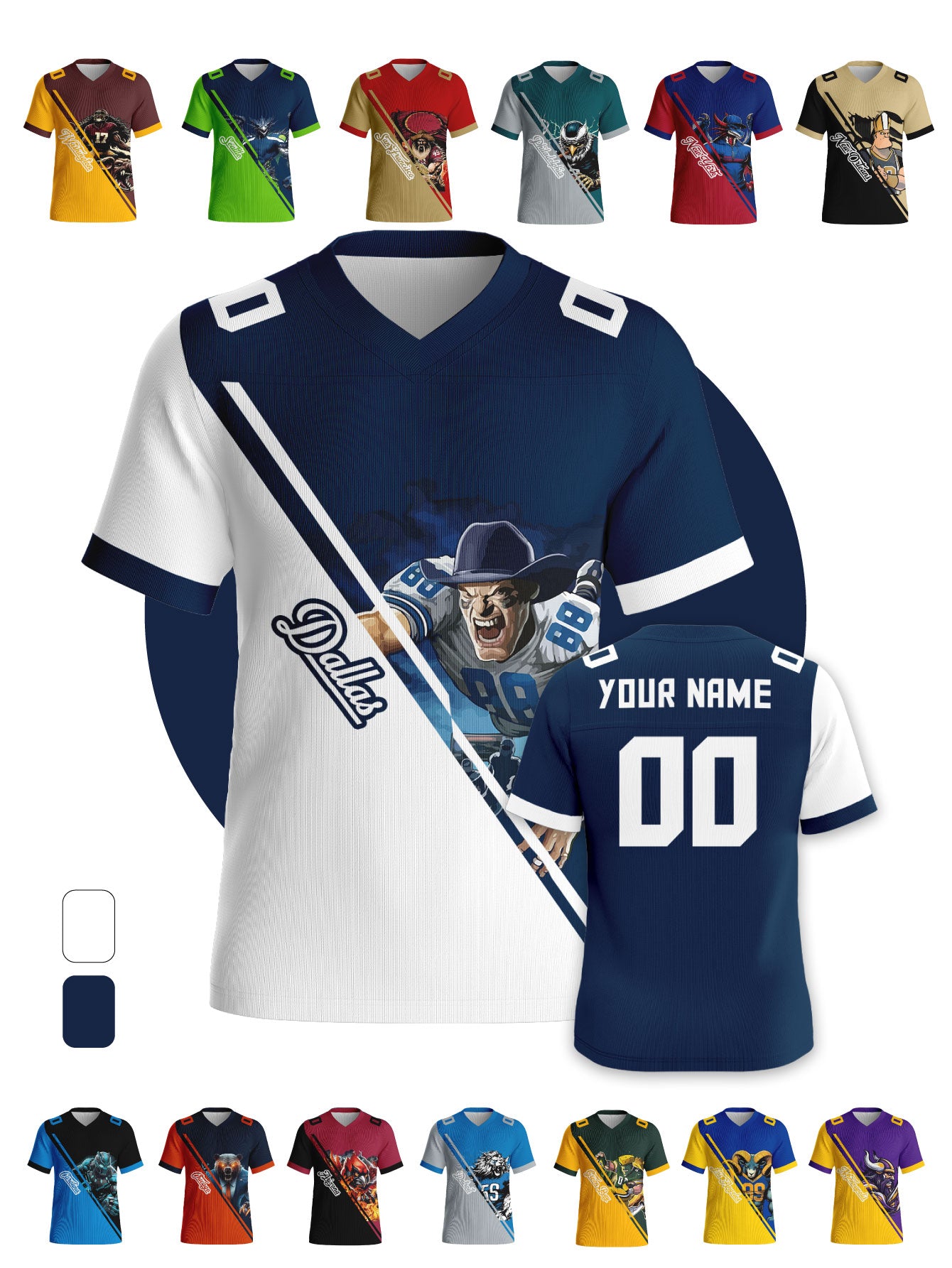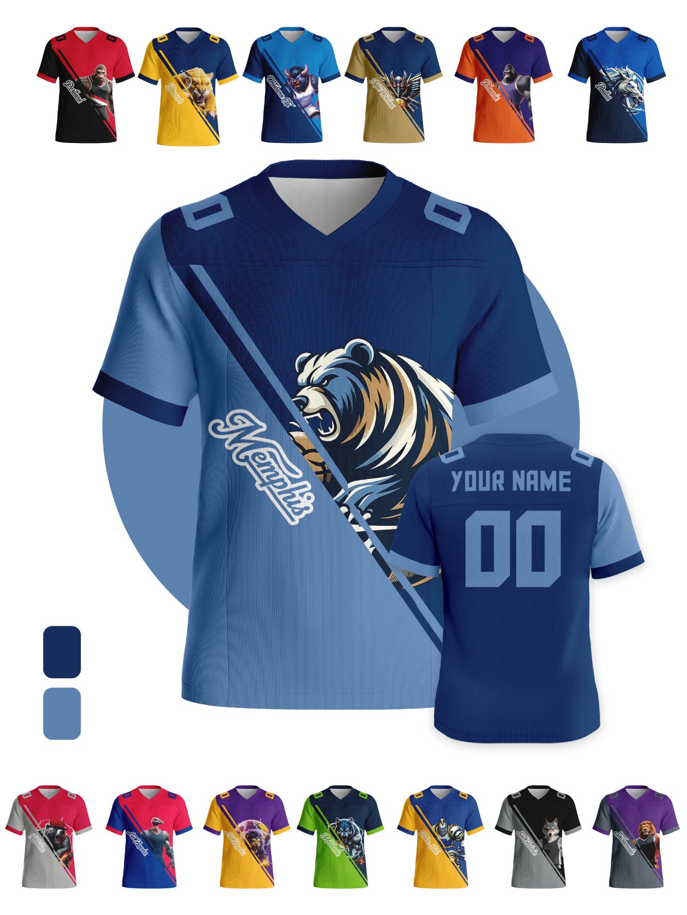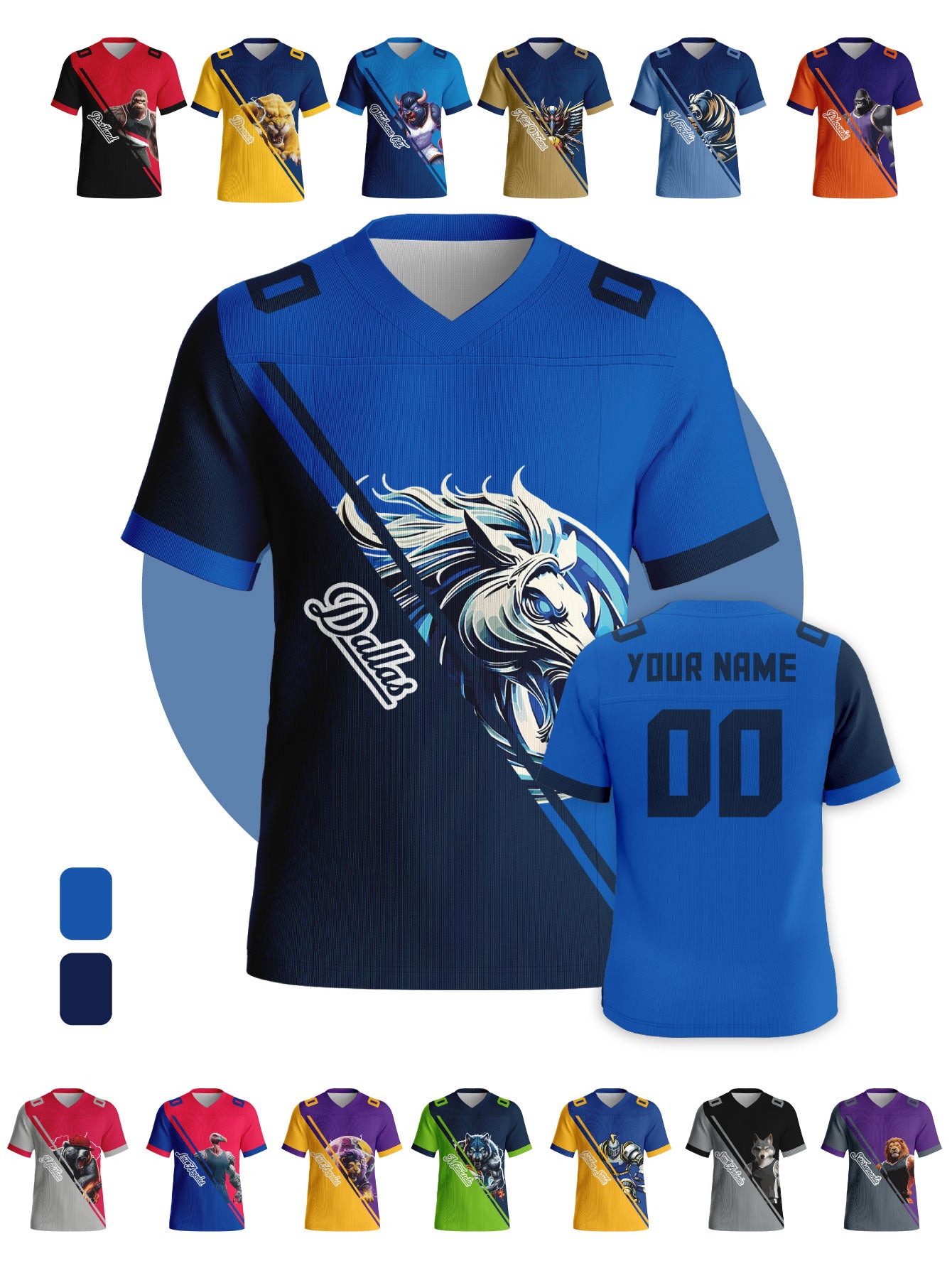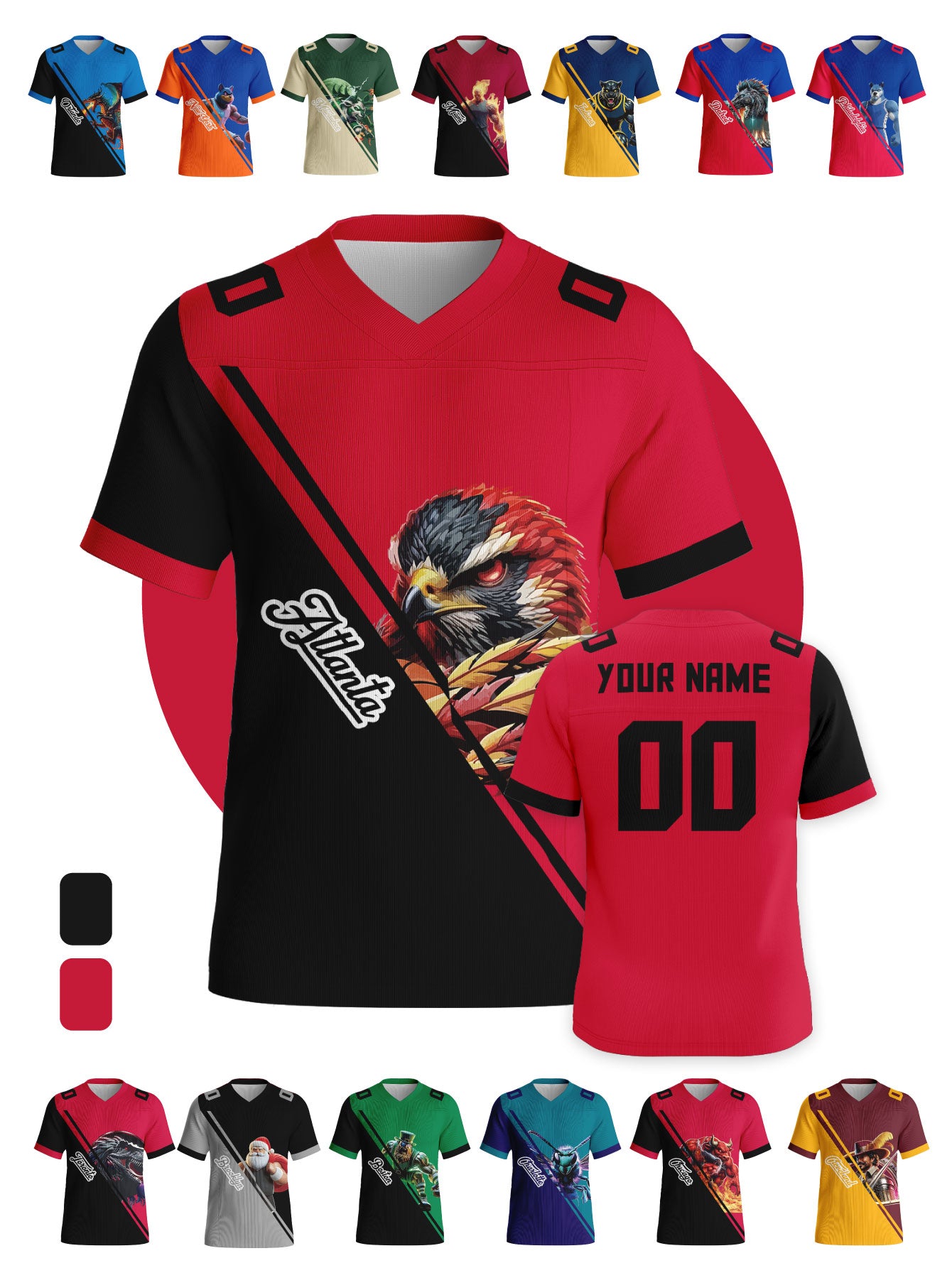 Battle Mascot Rivalry Custom Football Jerseys - Personalized Name & Back Number (Select Team)