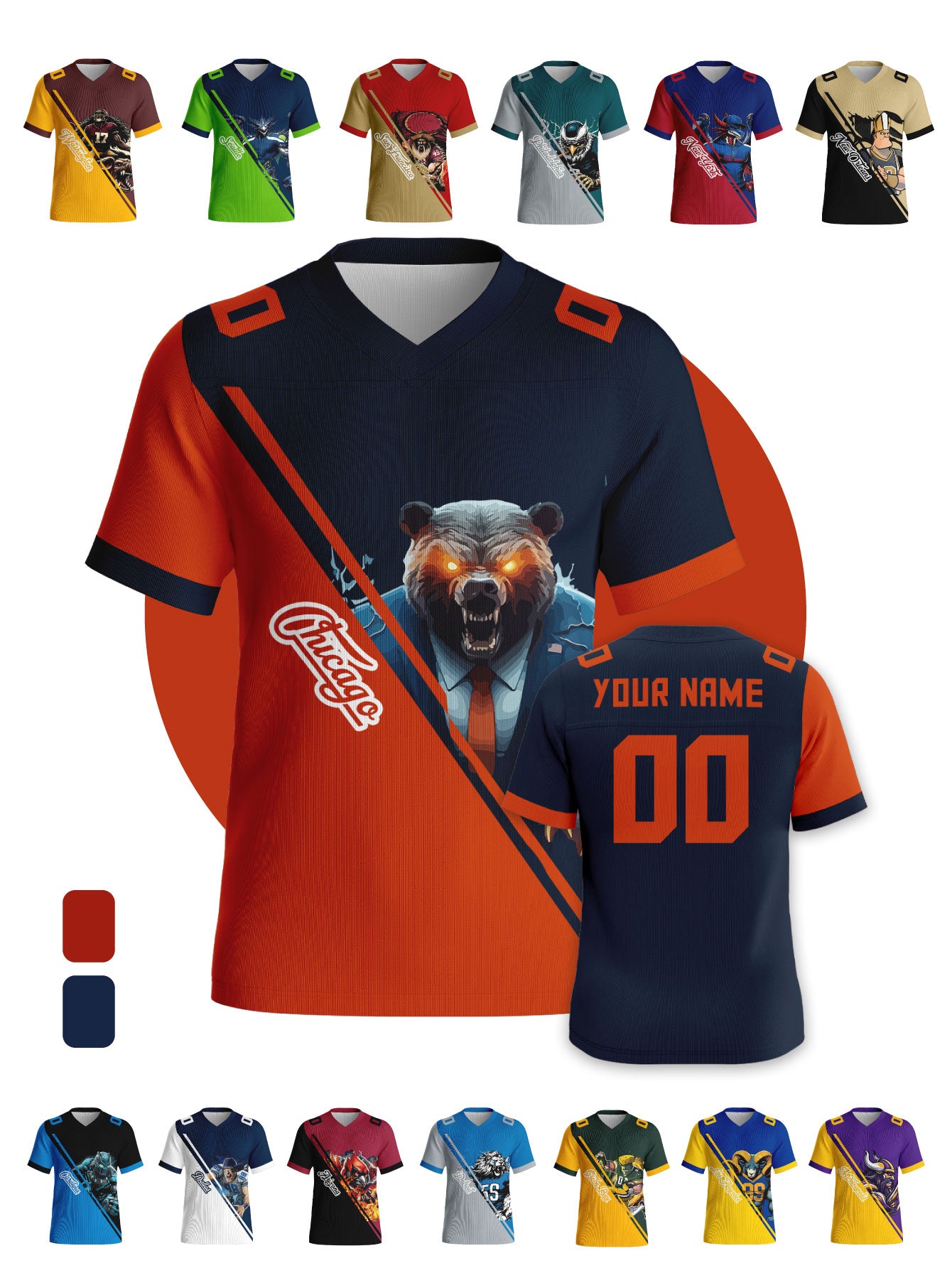 Mascot Game Day Men's Custom Football Jerseys - Personalized Name & Back Number (Select Your Favorite Team)