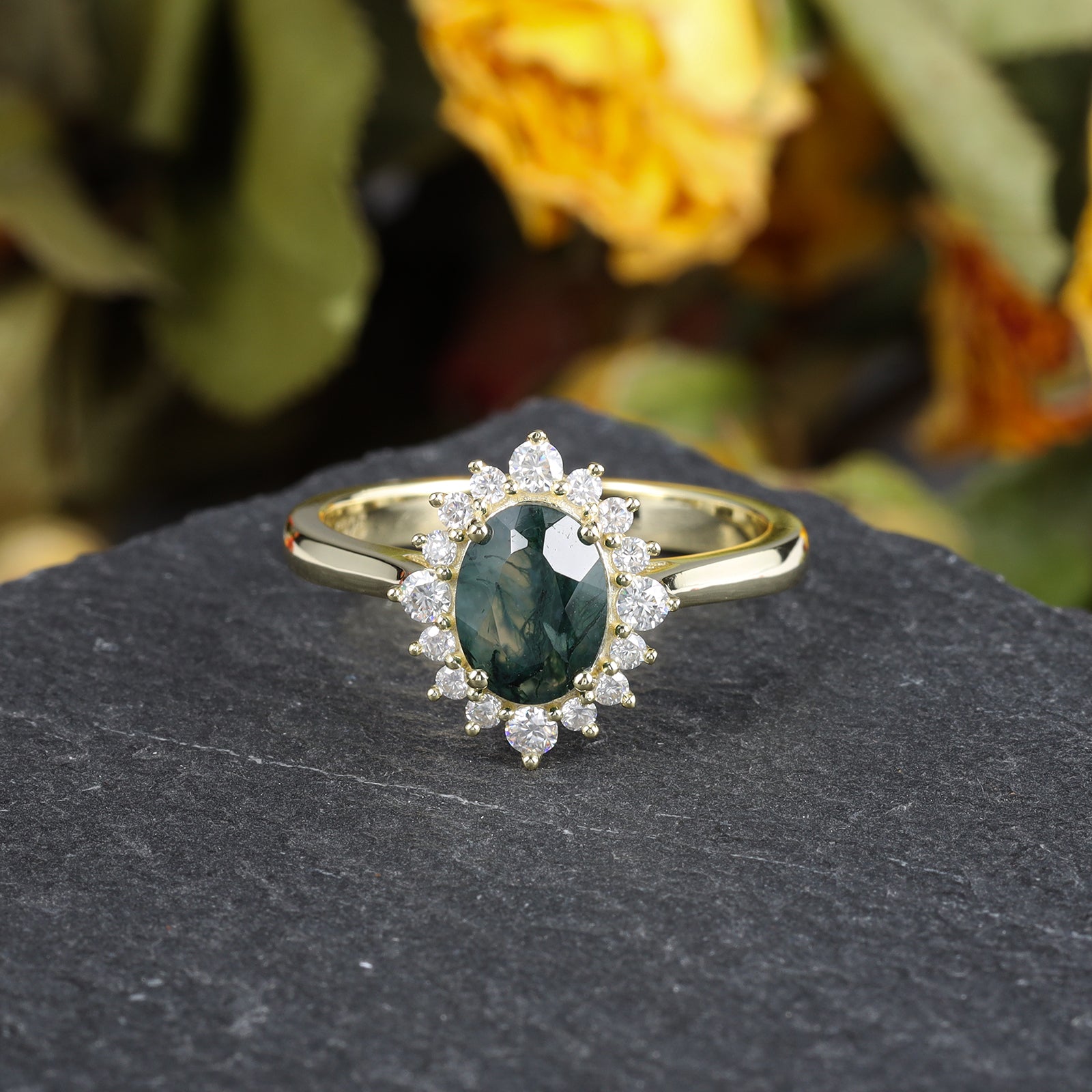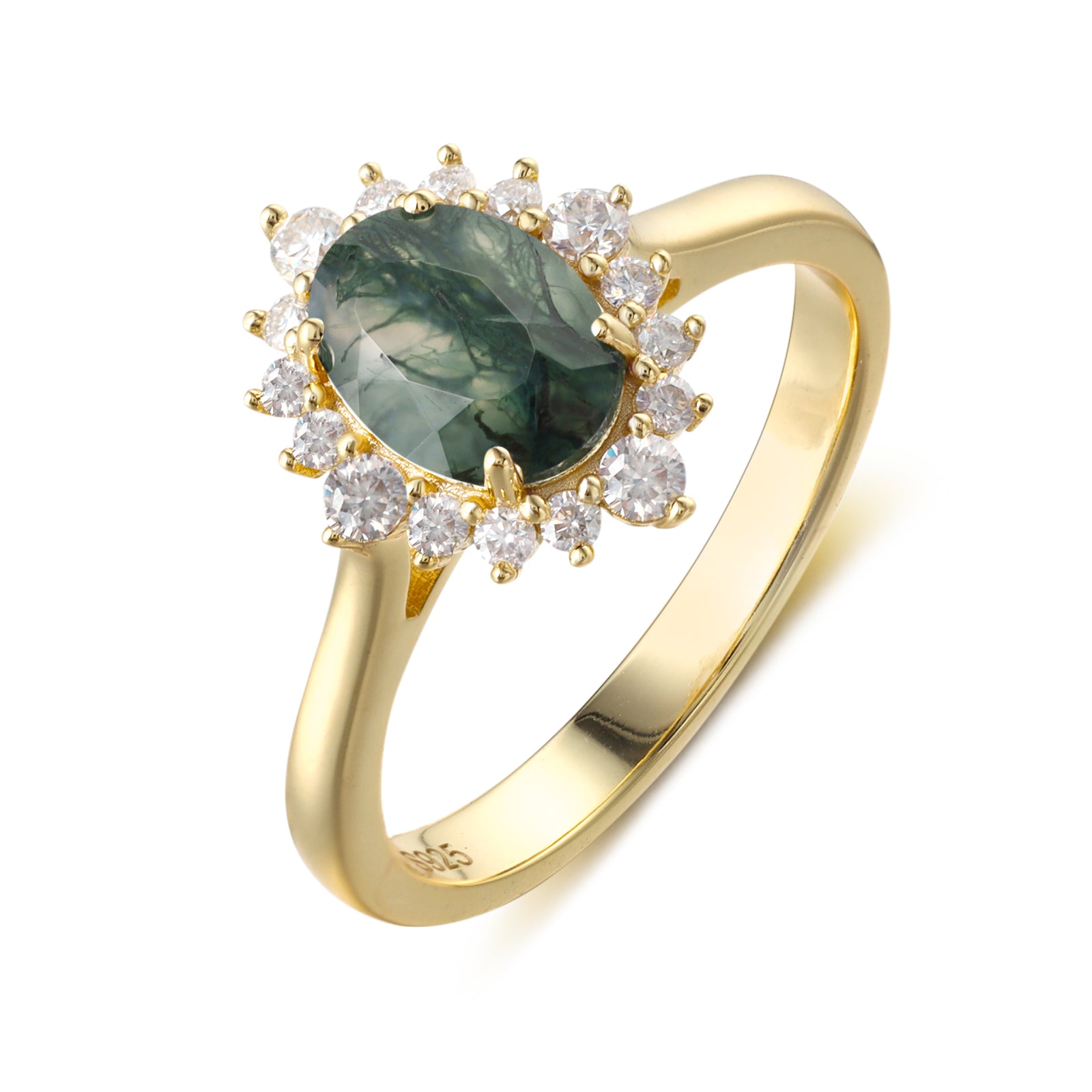 4FunGift® 925 Sterling Silver Natural Moss Agate Ring