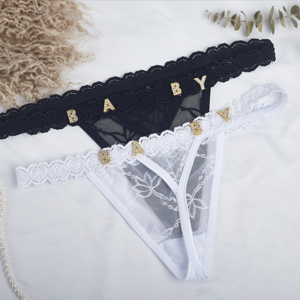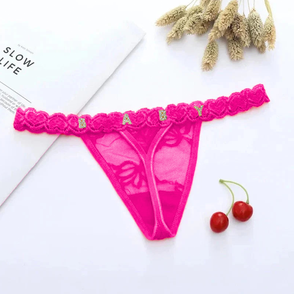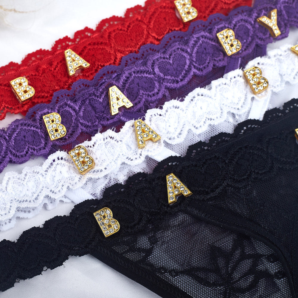 4FunGift® Custom Lace Thong with Gold/Silver Crystal Letter, Personalised Thong with Name, Birthday Gift for Her, Valentine's Day Gifts for Girlfriend