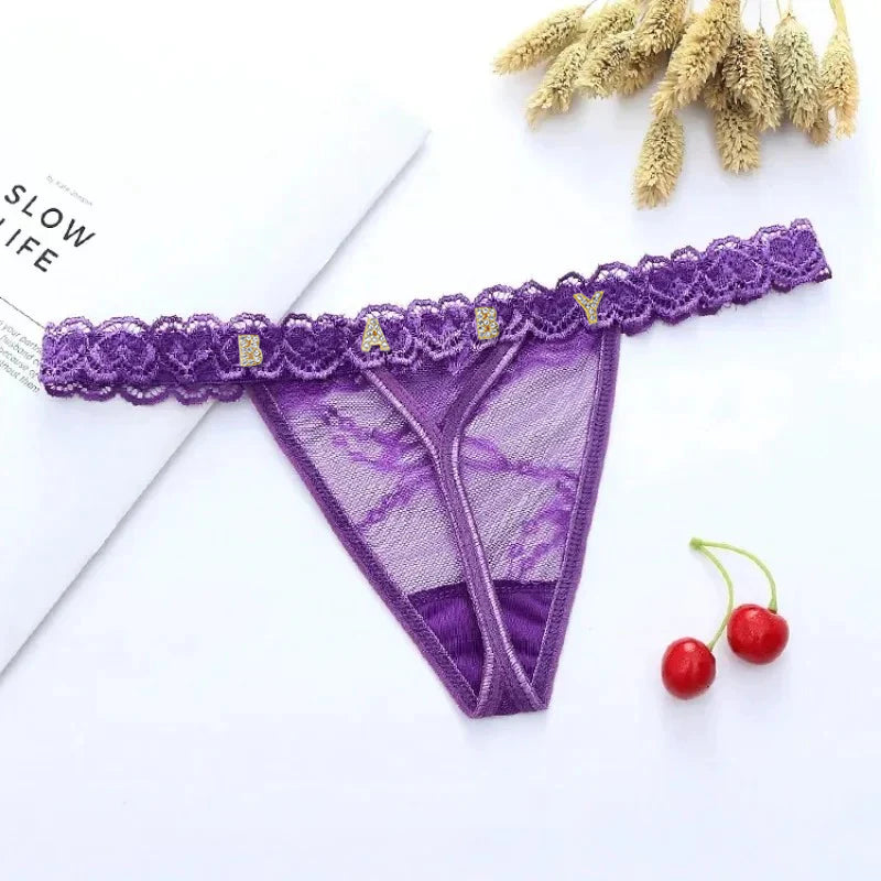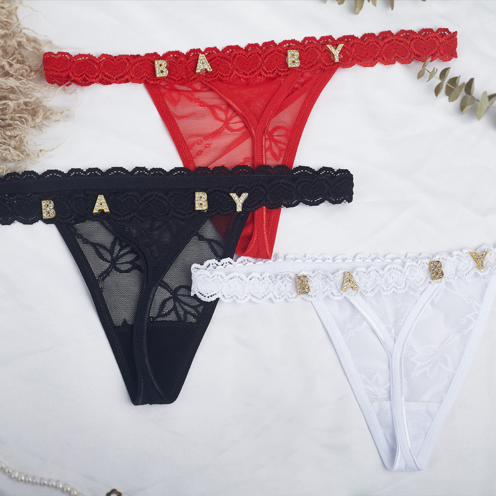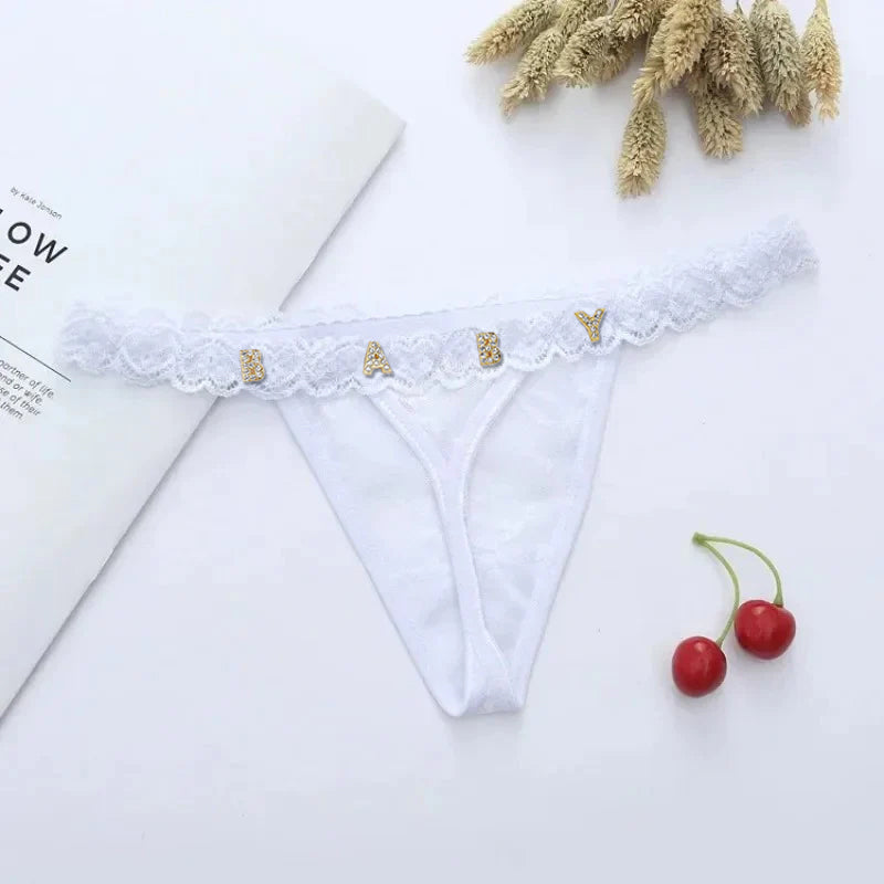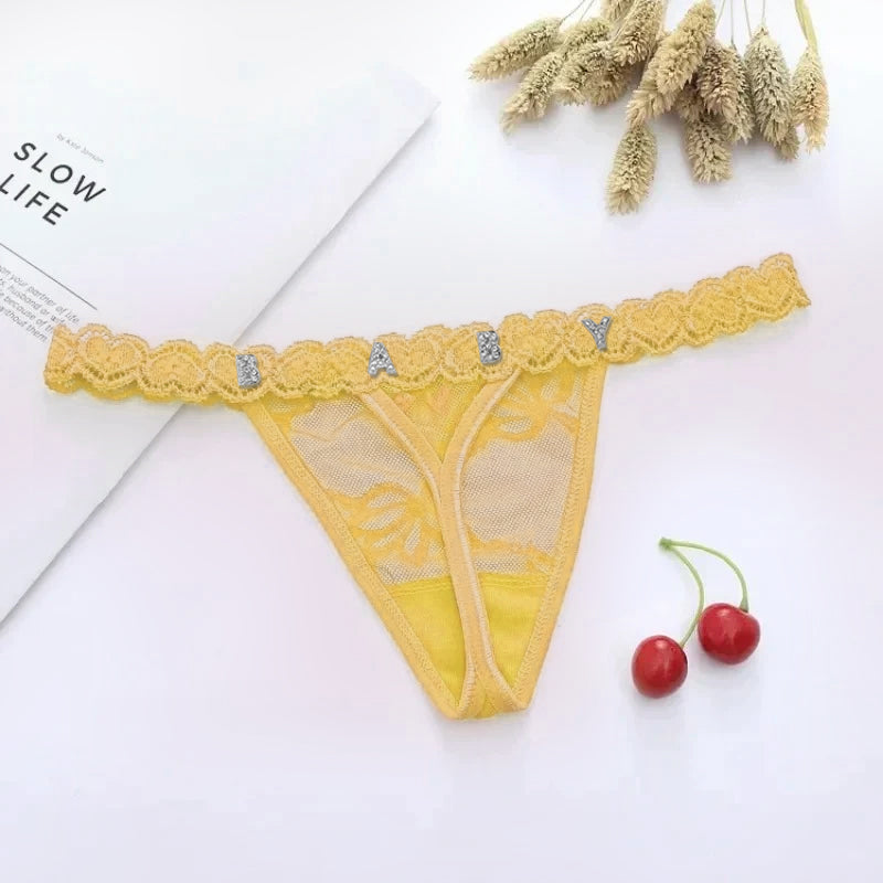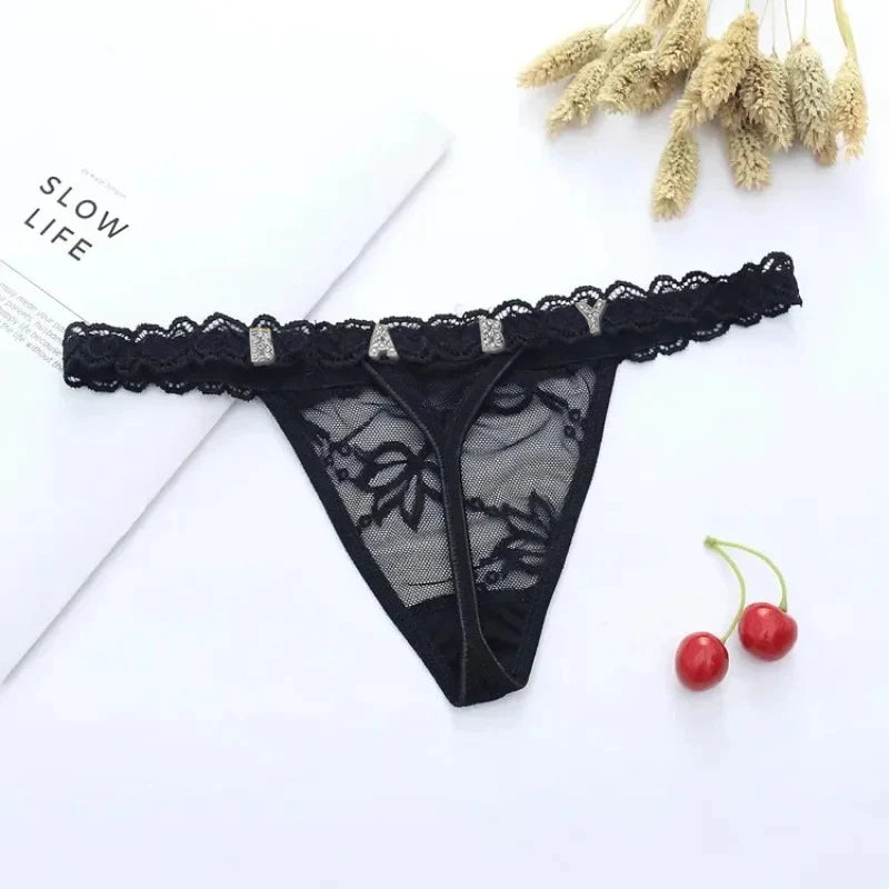 4FunGift® Custom Lace Thong with Gold/Silver Crystal Letter, Personalised Thong with Name, Birthday Gift for Her, Valentine's Day Gifts for Girlfriend