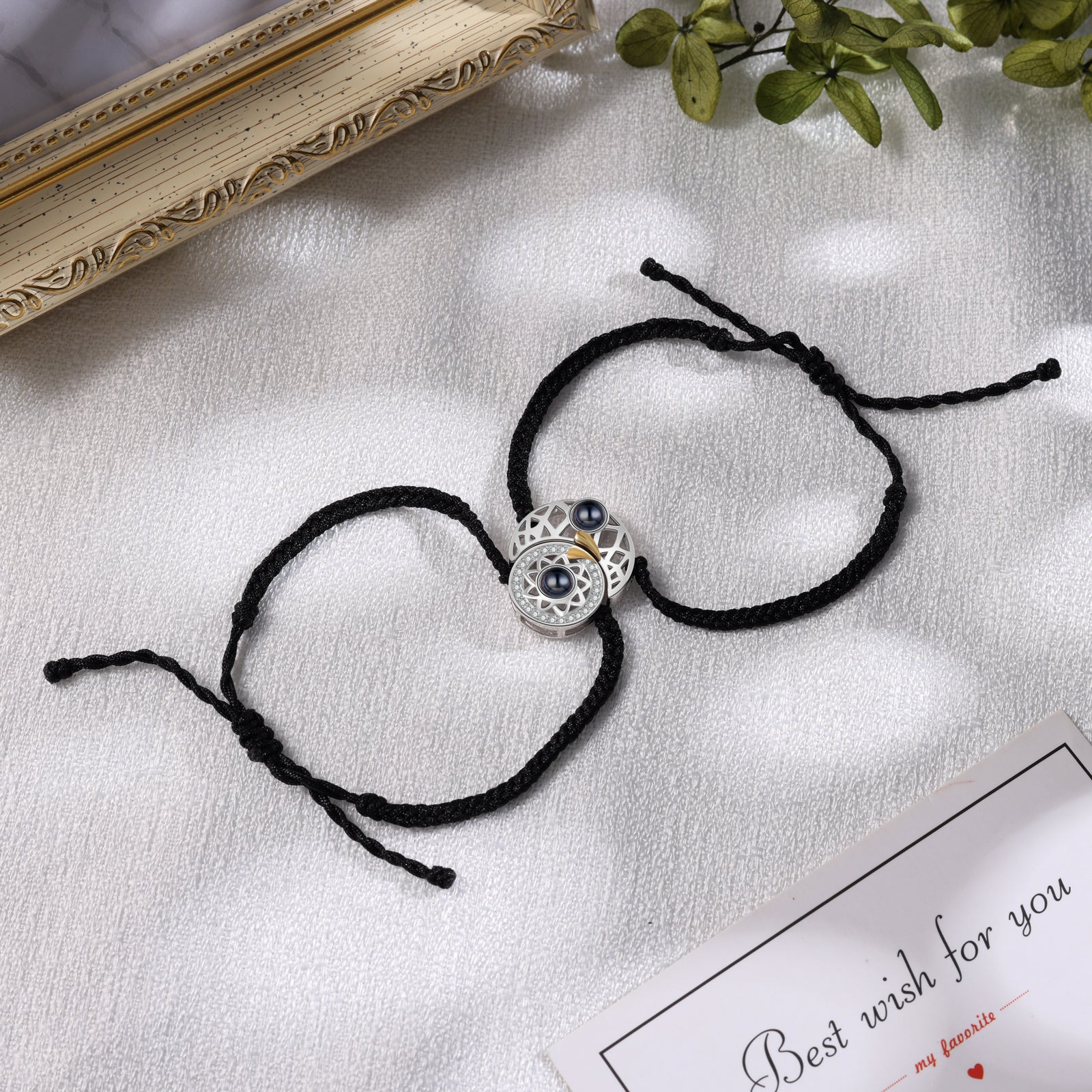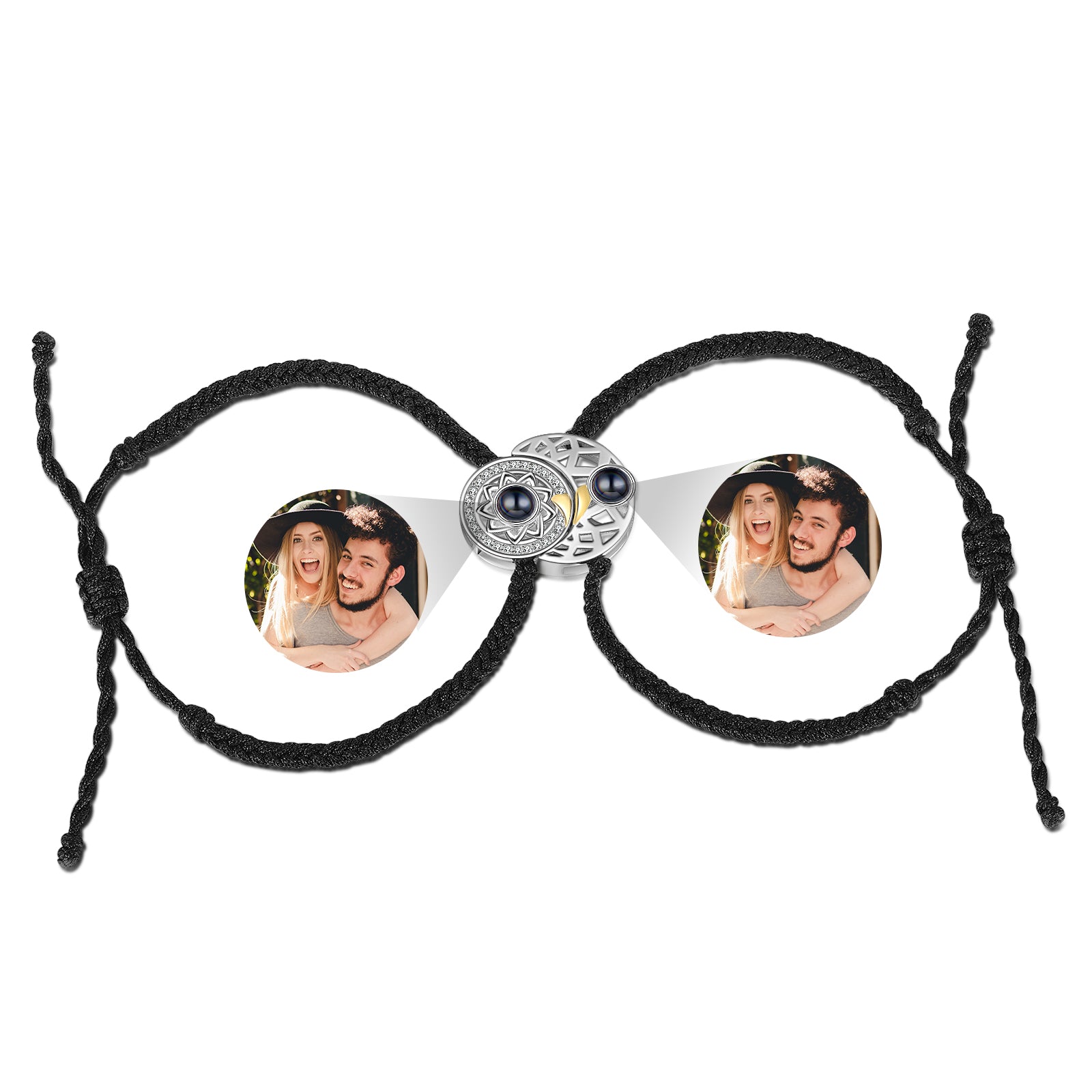 🔍Our Couple Photo Projection Bracelets capture the essence of your shared moments in a technologically advanced yet incredibly personal way. With just a beam of light, the bracelet projects your chosen photo, allowing you to relive those intimate memories. The moon and sun charms add an extra layer of charm and elegance, making this jewellery piece a standout. Don't hesitate to express your love uniquely and stylishly. Order your photo projection bracelets today and wear your love story on your wrist.
