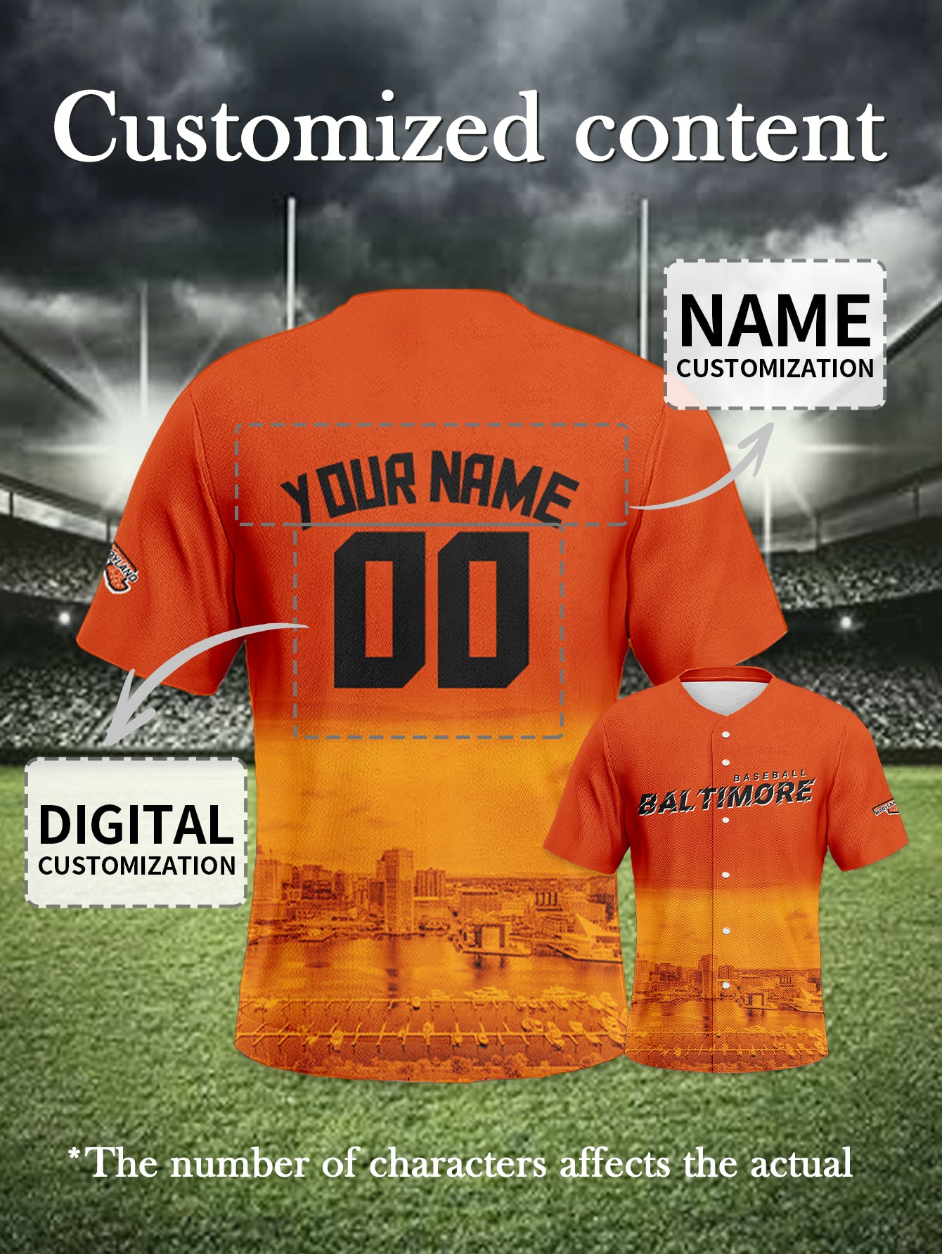 Baltimore Orioles Baseball Jersey Featuring Your Name & Number - Maryland Map