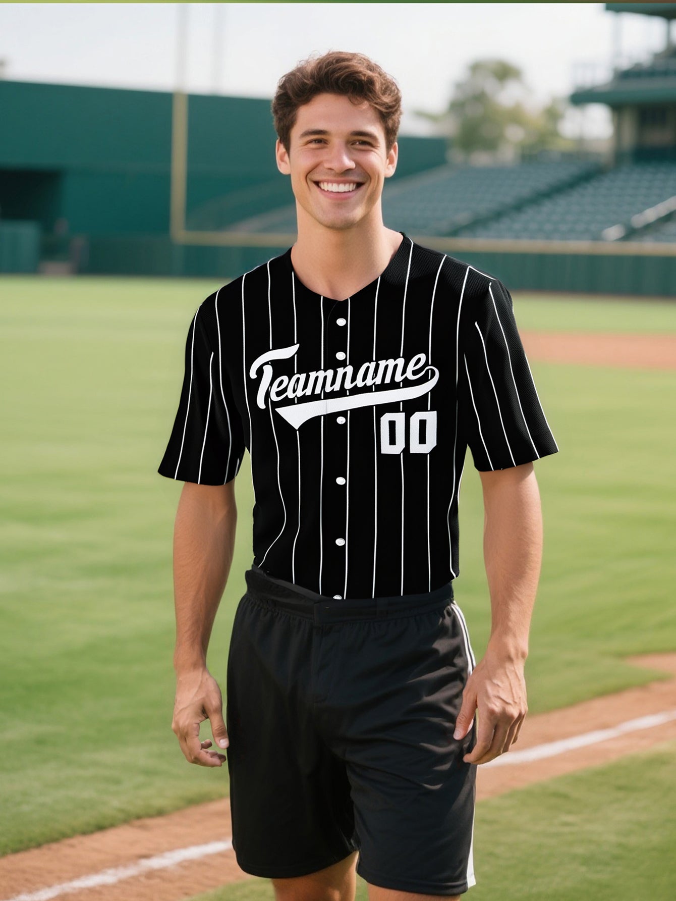 Black Pinstripe Modern Jersey - Sleek Name & Number Option
