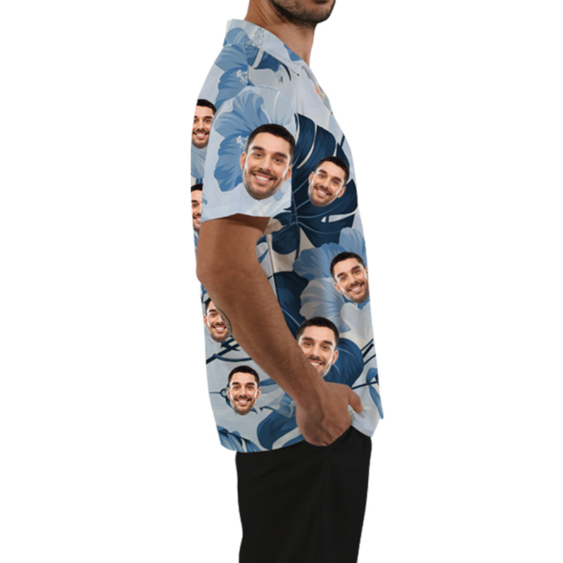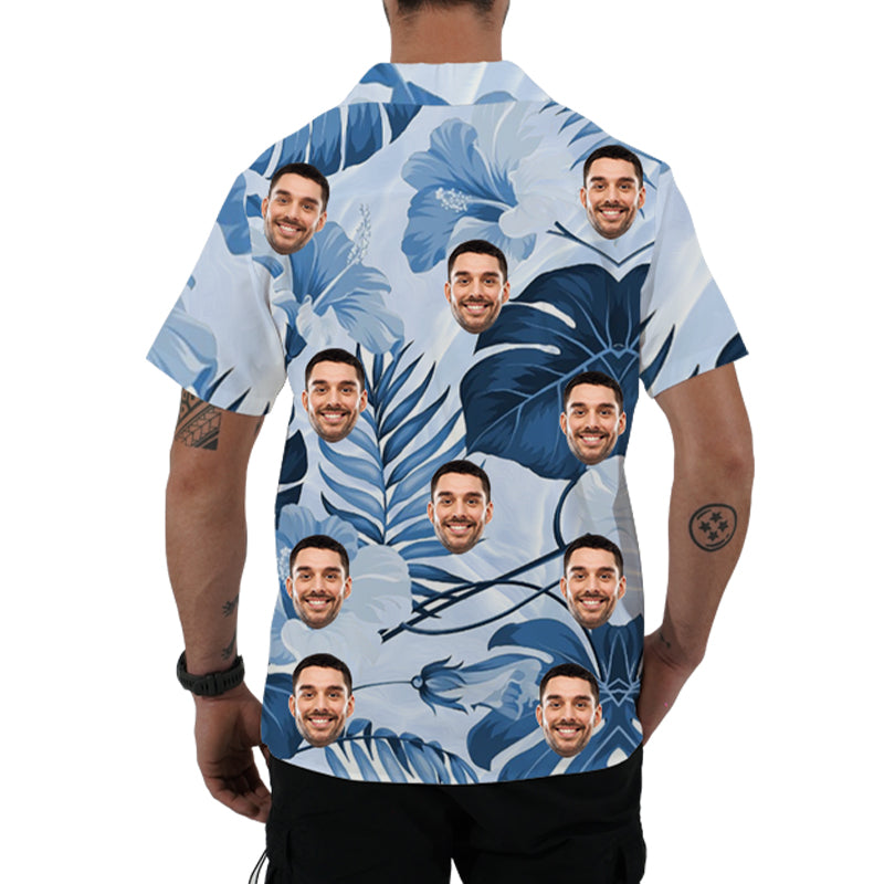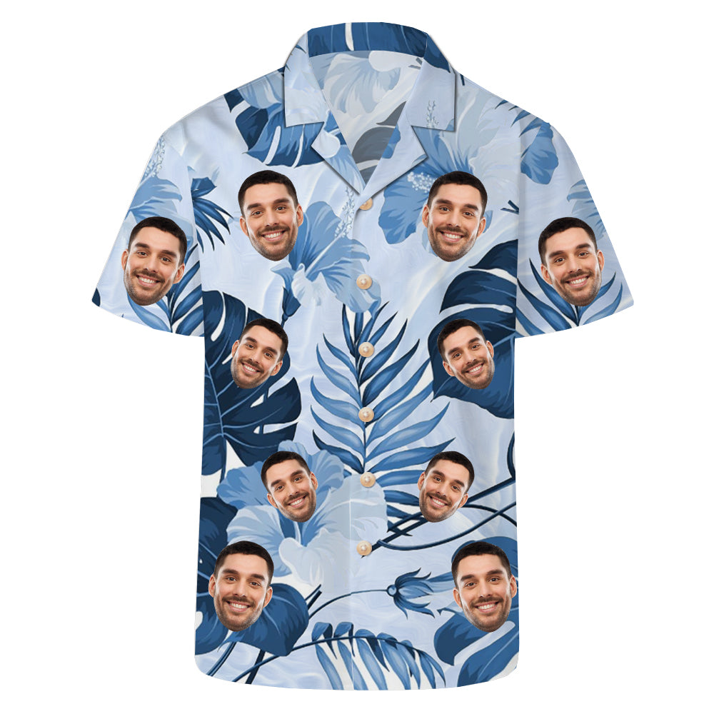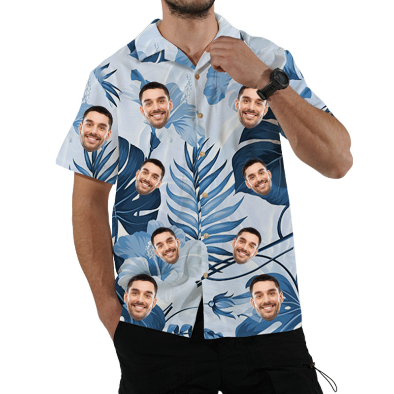 Blue Men's Hawaiian Shirt Customized Face Photo Top Breathable Shirt Gift for Him Valentine's Day Vacation