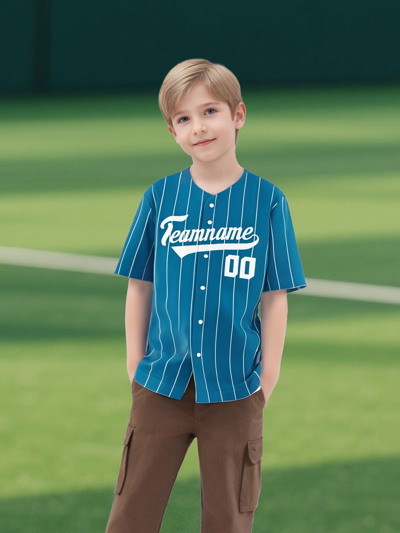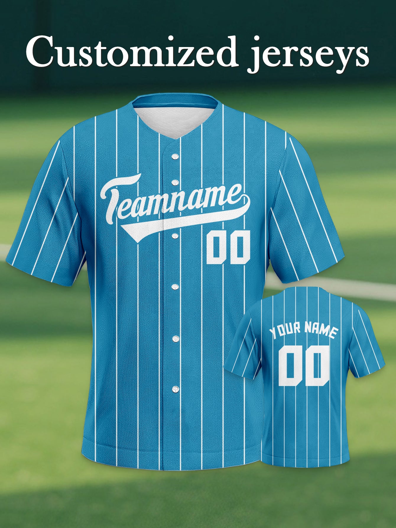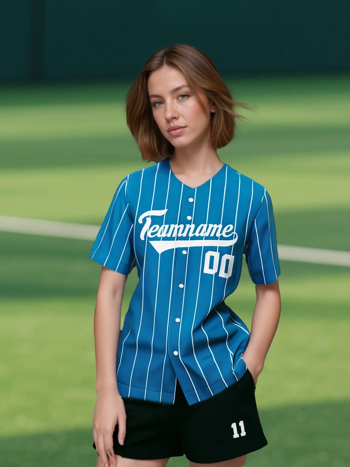 Blue Pinstripe Baseball Jersey - Personalized Name & Number