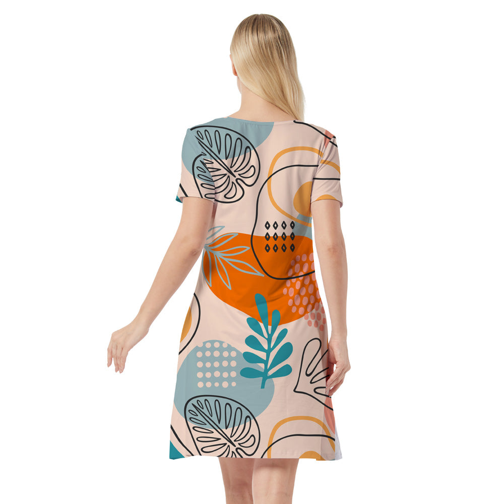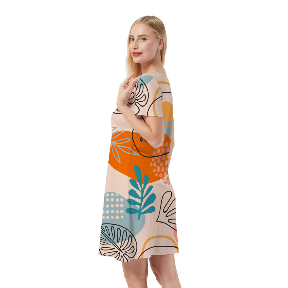 Color Drawing Ladies Summer Dresses Knee Length Plus Size