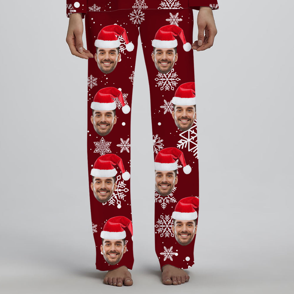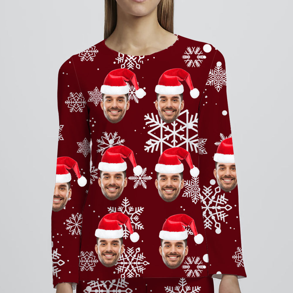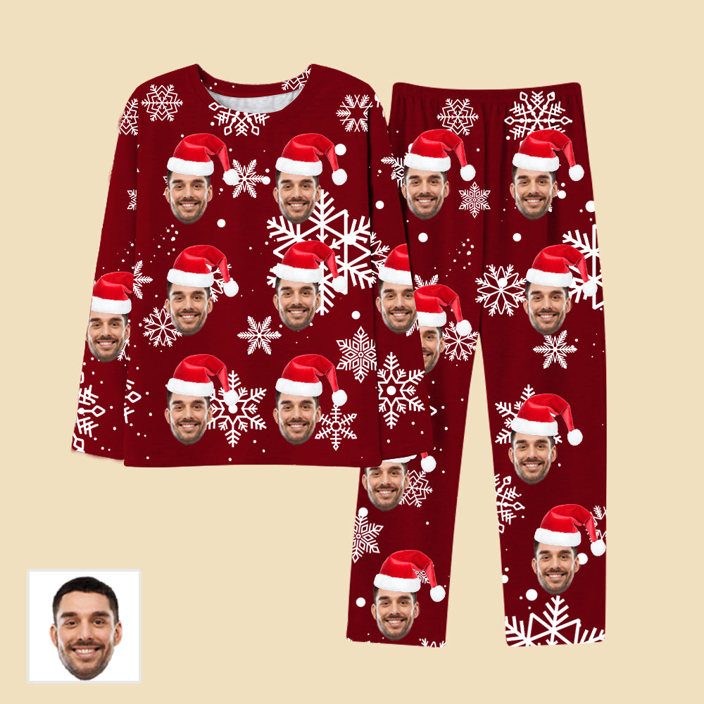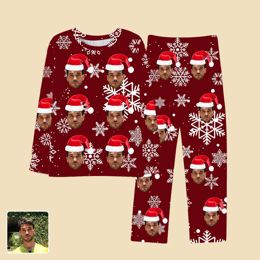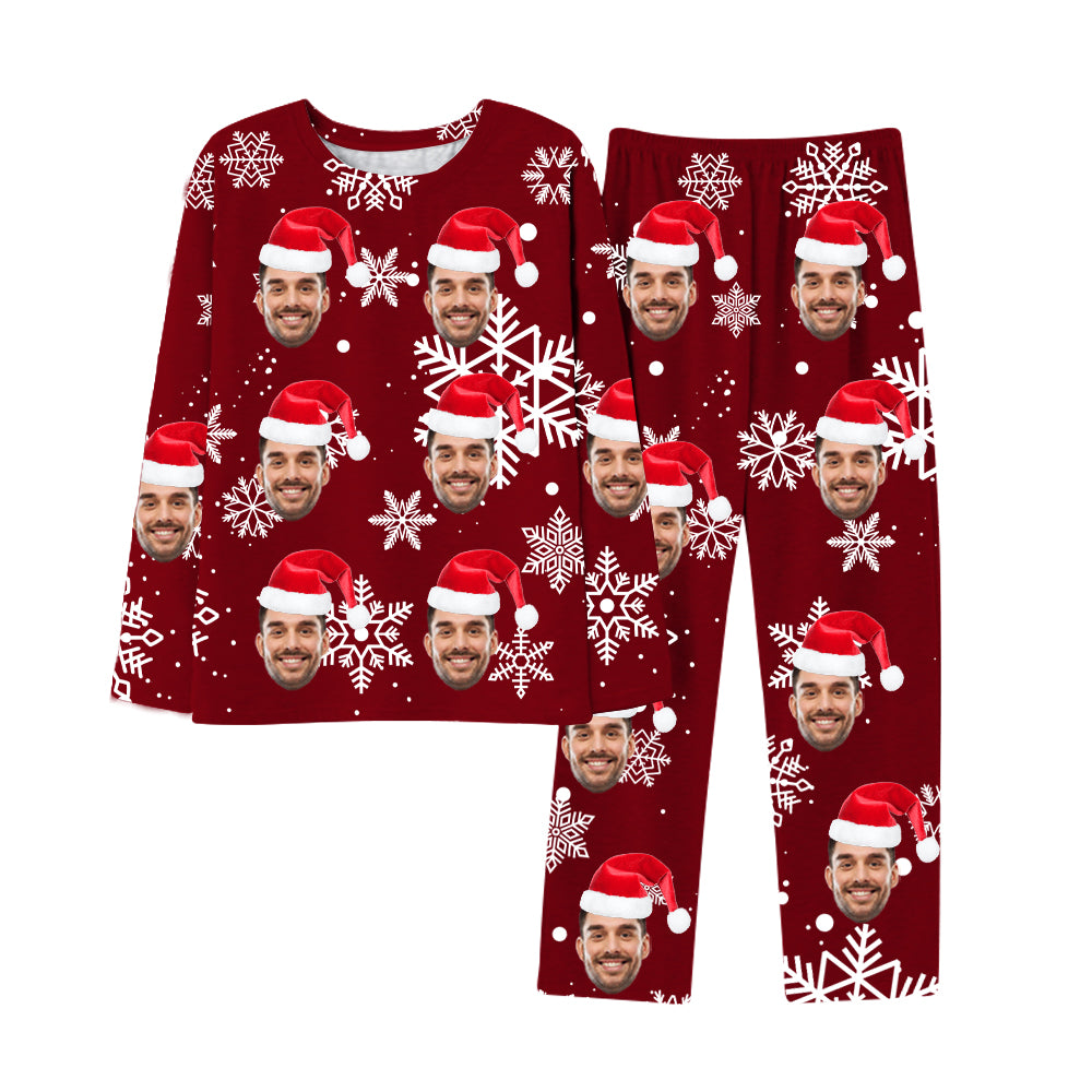 4FunGift® Custom Christmas Hat Face Print Pajamas Sleepwear For Couple