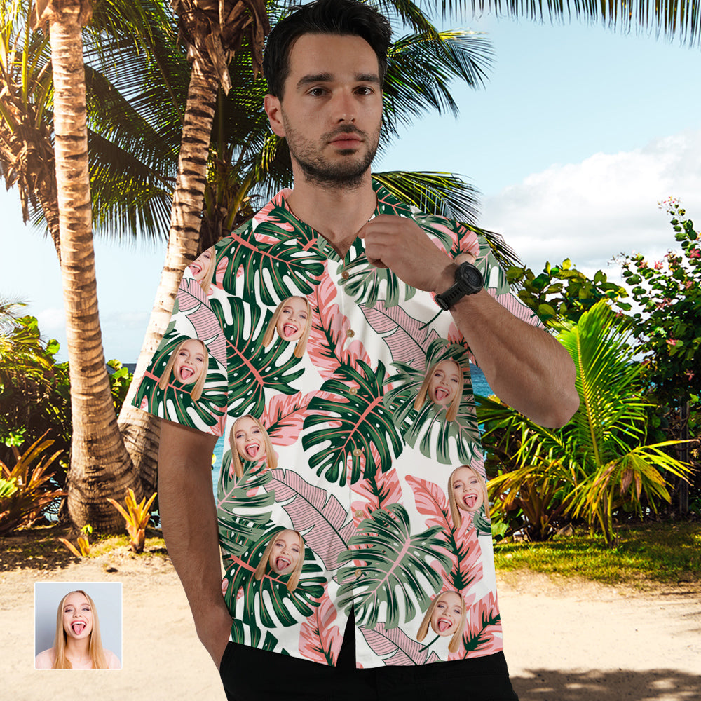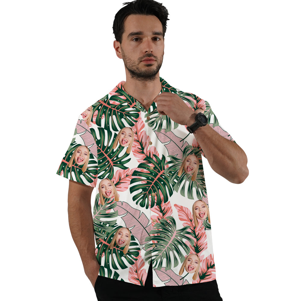 Custom Face Beauty Flower Couple Hawaiian Shirts