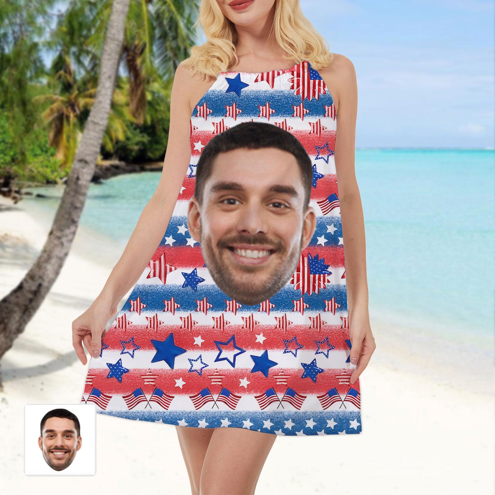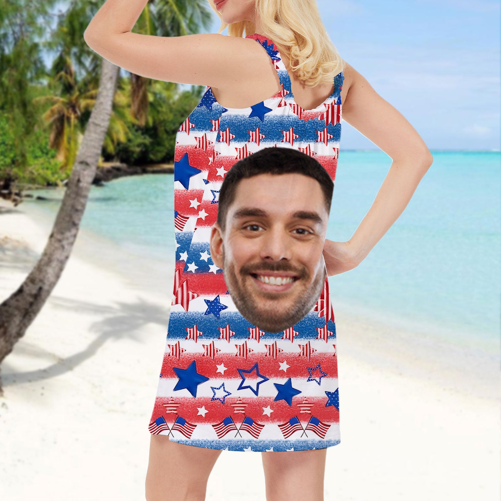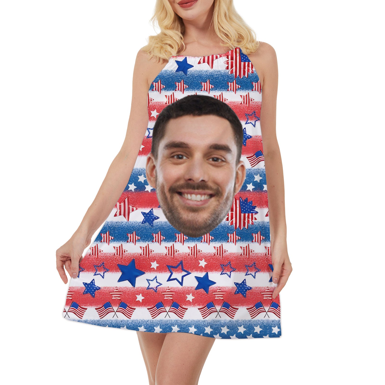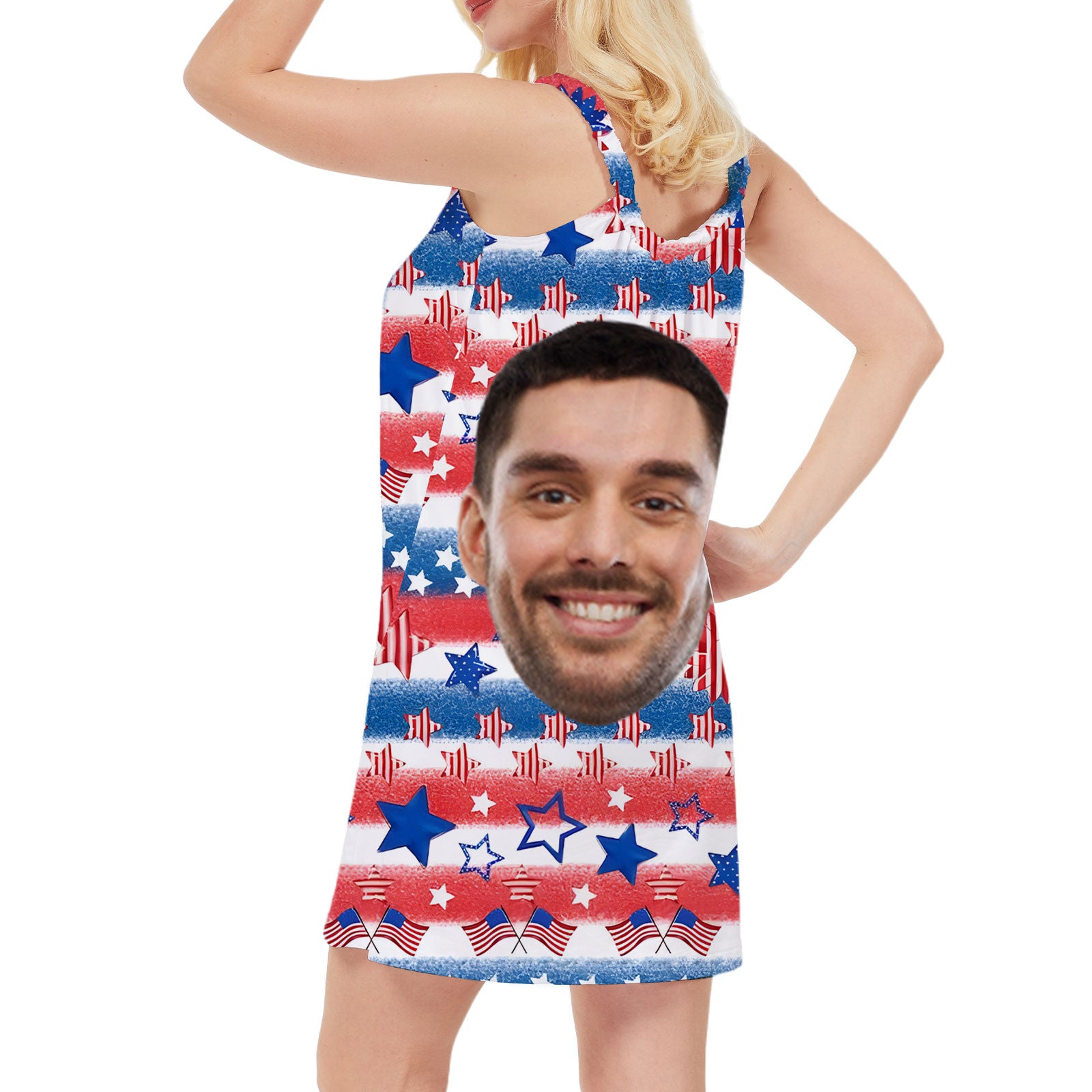 Custom Face Stars & Stripes Dress - Personalized Unique Women's Flag Dress