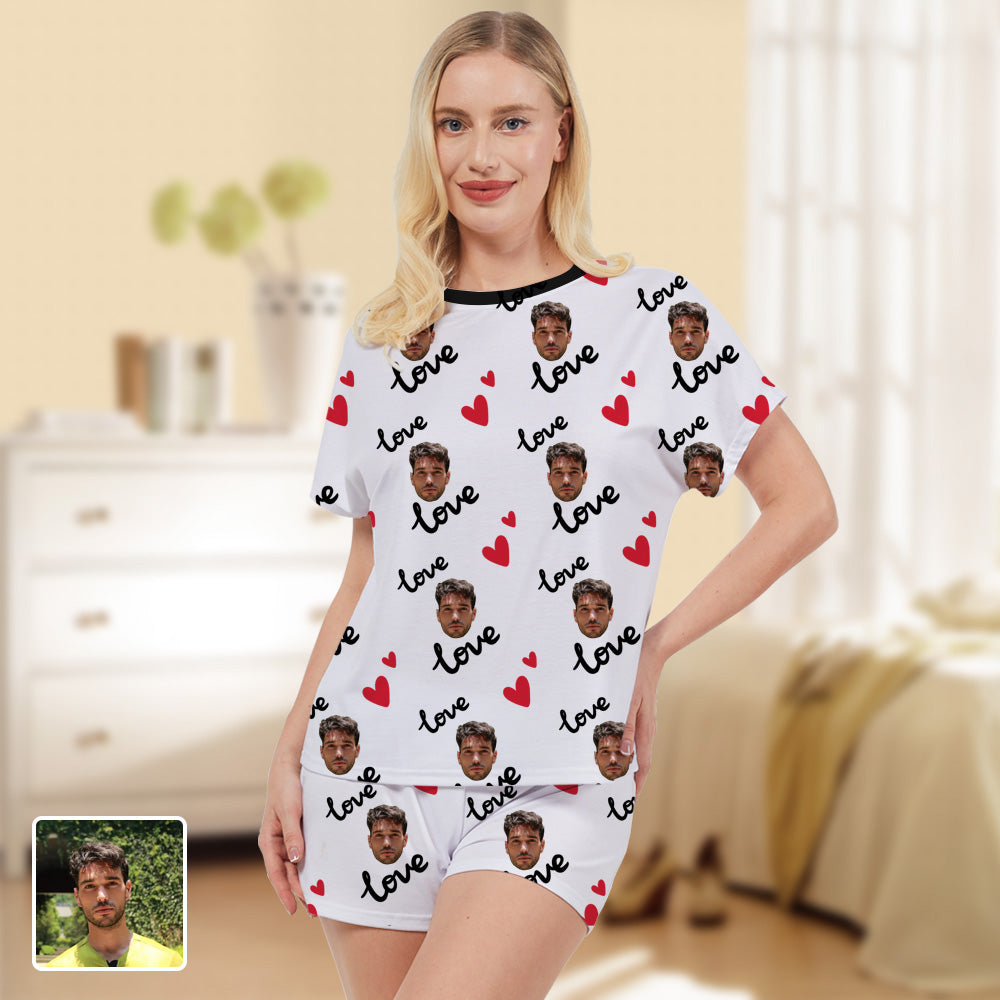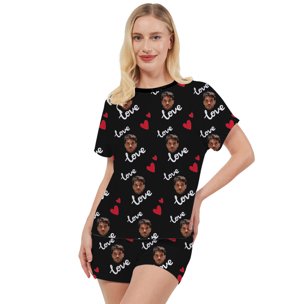 4FunGift® Custom Women's Pajamas T-Shirt & Shorts Set Heart Love Gift