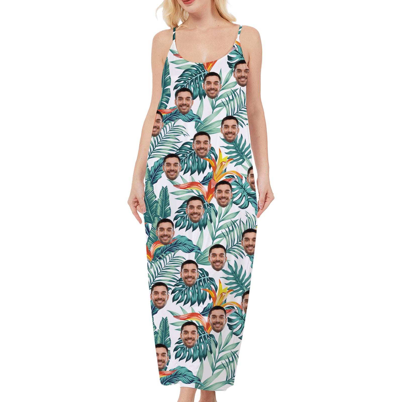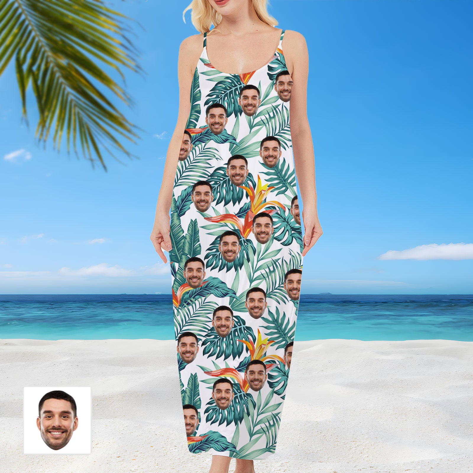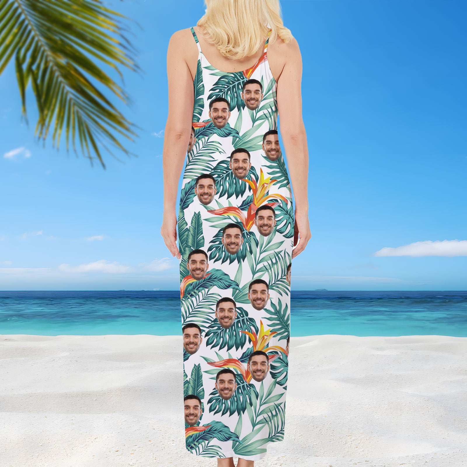 Customized Face Photo Woman Maxi Dresses Summer Floral Print Dresses Holiday Casual Long Dresses