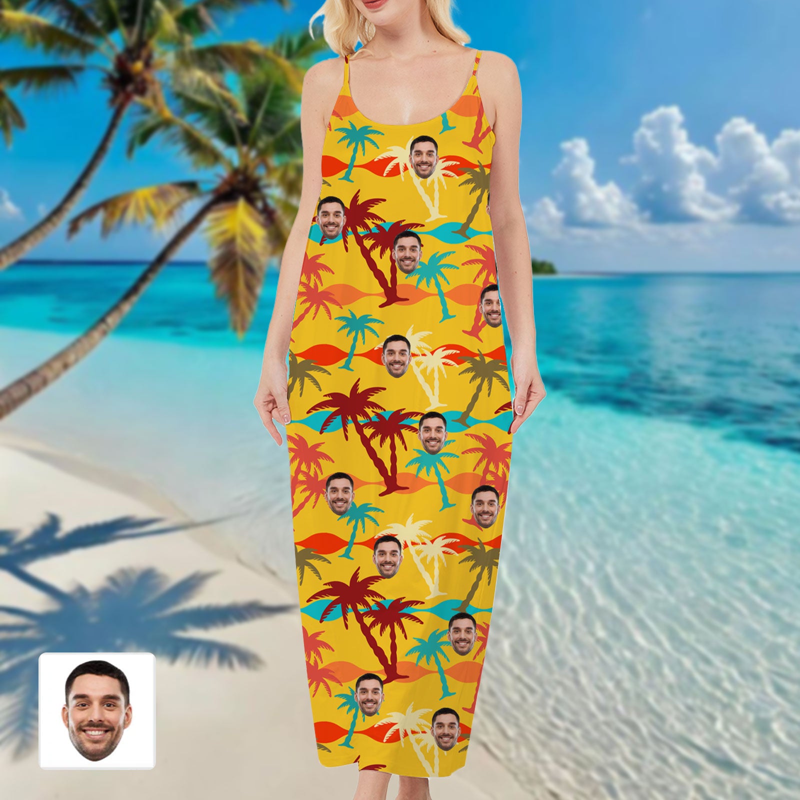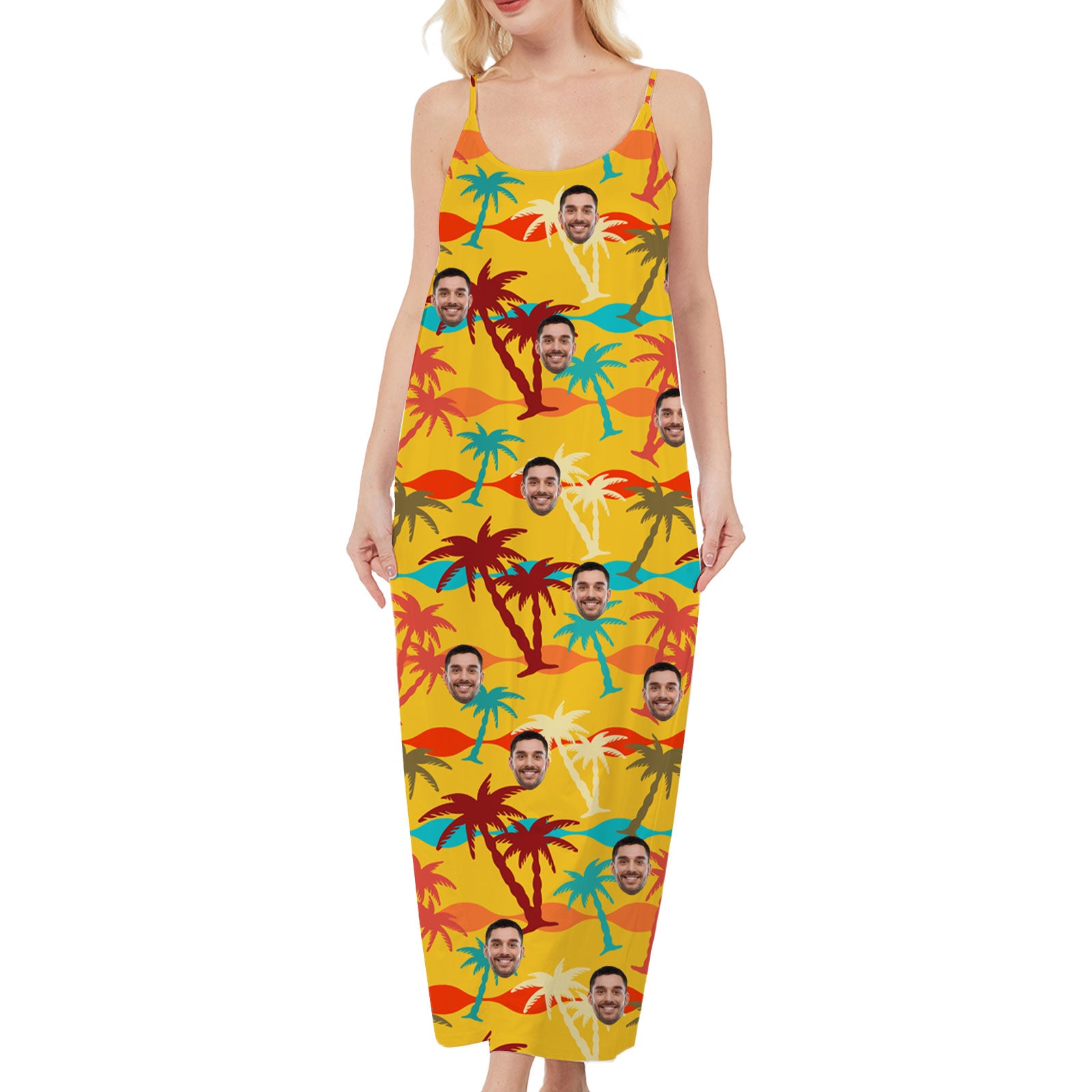 Customized Face Women's Dress Hawaiian Style Vacation Long Dress Casual Printed Maxi Dress