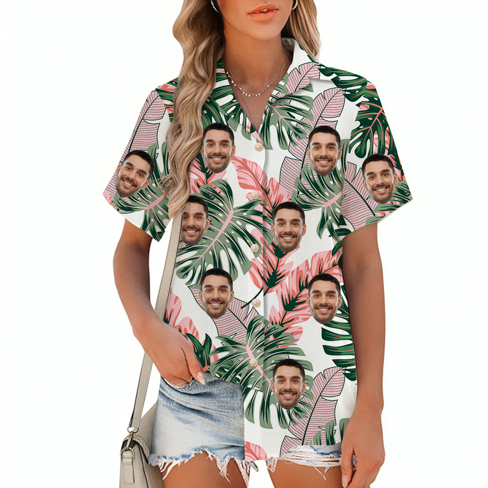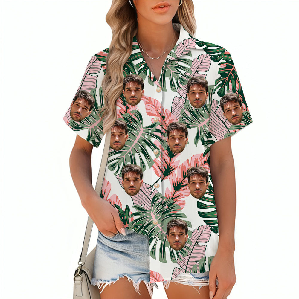 Customized Pink Women's Printed Shirt Summer Short Sleeve Shirt Outer Top