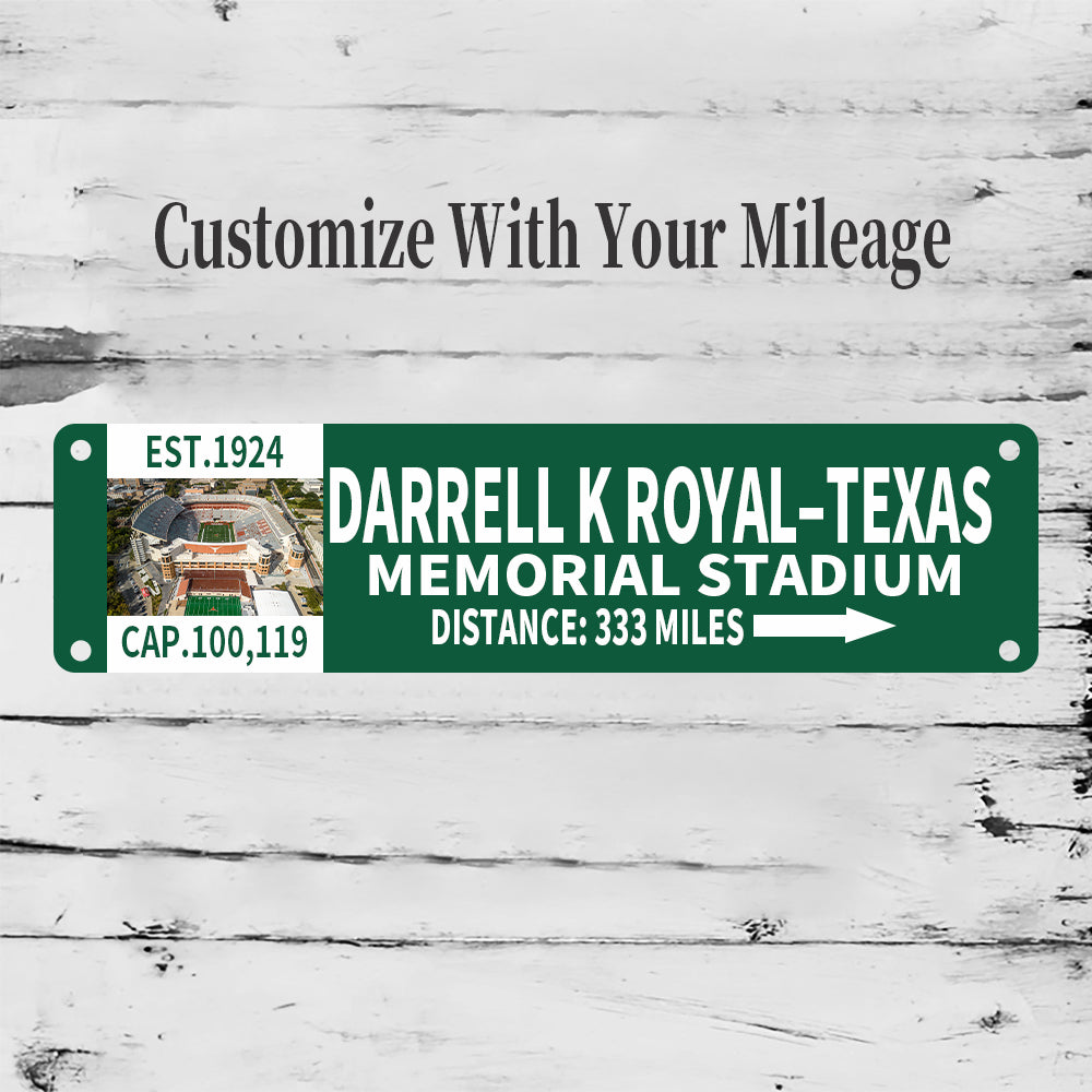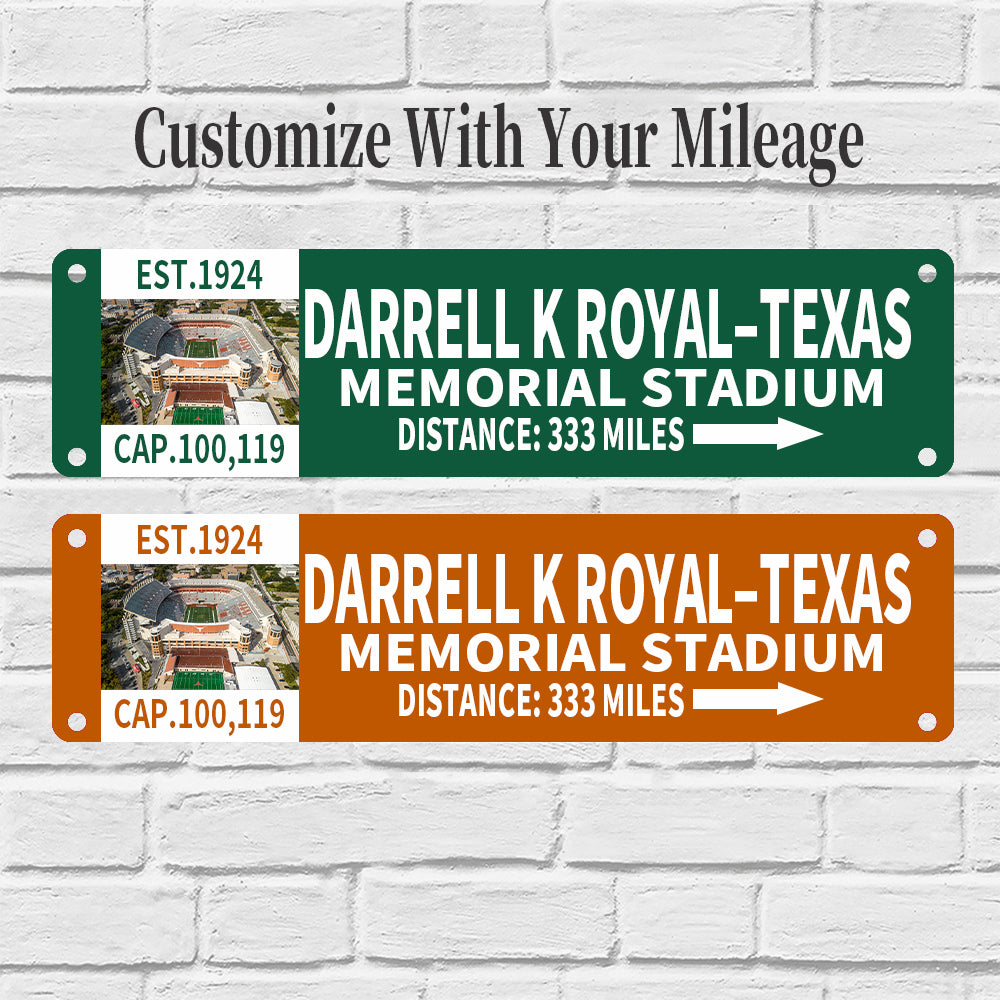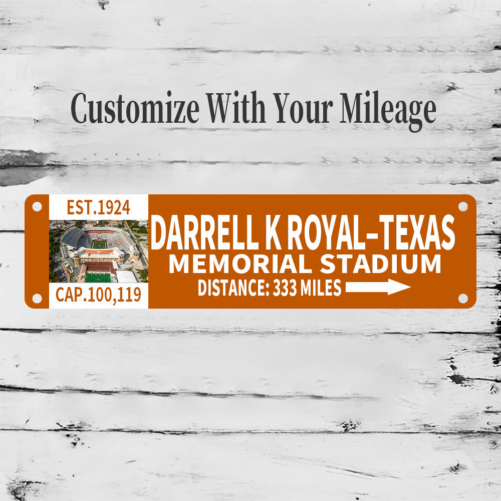 Darrell K Royal–Texas Memorial Stadium, Custom Mileage Sign for Texas Longhorns football Fan, Personalize Distance To Darrell K Royal–Texas Memorial Stadium, UT Ornament