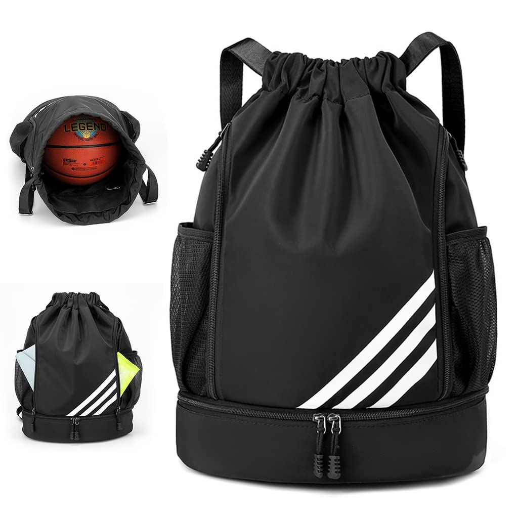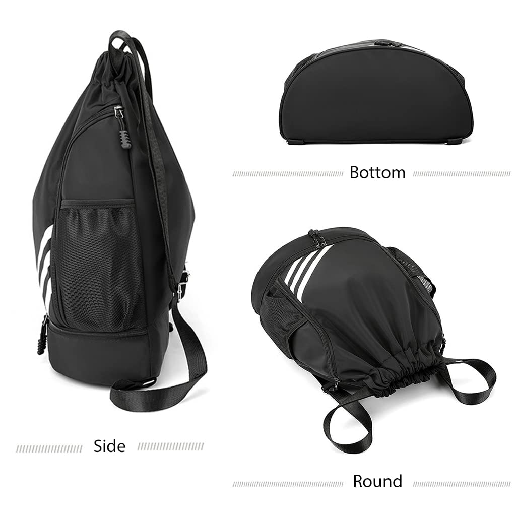 - UTILITY LARGE CAPACITY: This sport drawstring bag with one main pouch, zipper pouch and 2 side mesh pocket, can fit most basketball, football, rugby, etc. The Enough capacity for keeping your daily essentials including your clothes for change, phone, waterbottle, accessories, shoes, food, anything for this trip, meeting your needs for outdoor activities. With the 2 adjustable shoulder belts, you can easily make the bag comfortab to wear for you.
