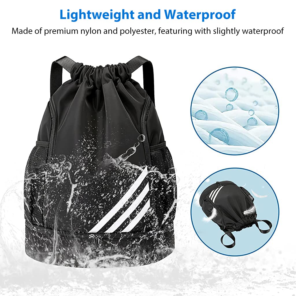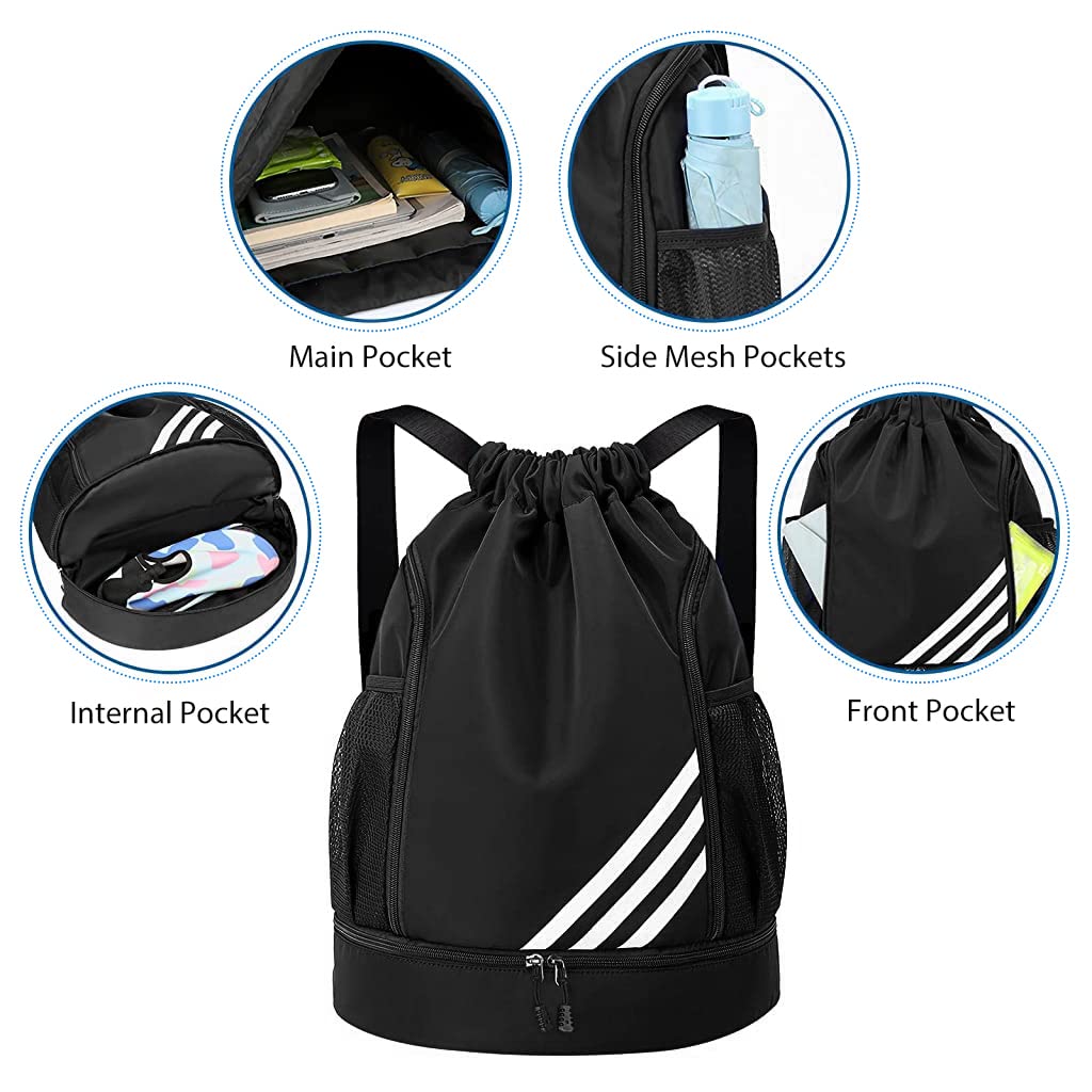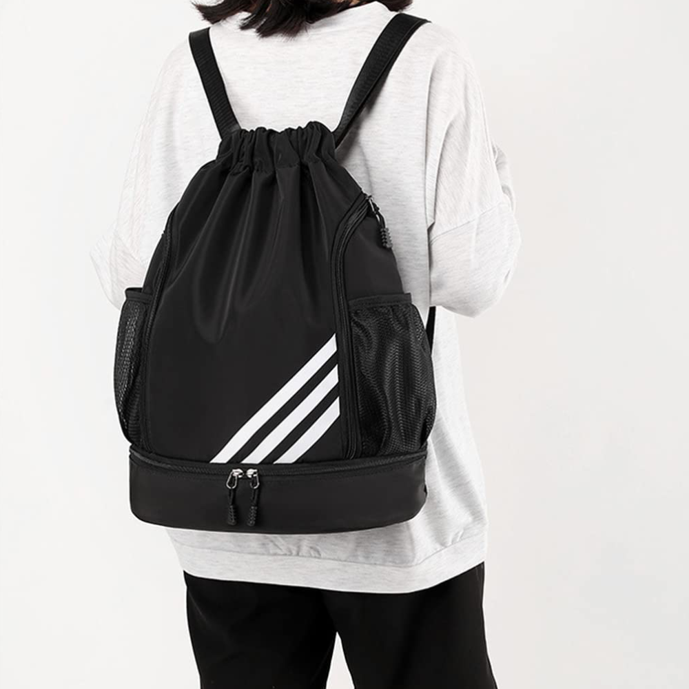 Drawstring Bag for Teens Men Women Gym Sports Double Layer Large Capacity Backpack for Basketball Football