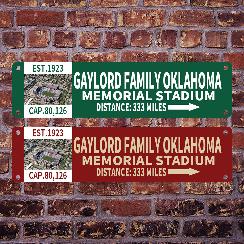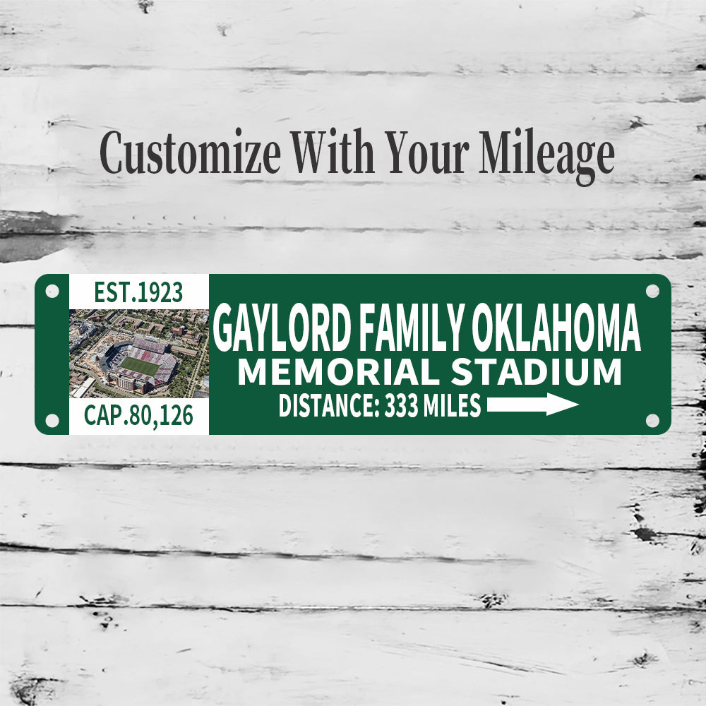 Gaylord Family Oklahoma Memorial Stadium, Custom Mileage Sign for Oklahoma Sooners Football Fan, Personalize Distance To Gaylord Family Oklahoma Memorial Stadium, OU Ornament