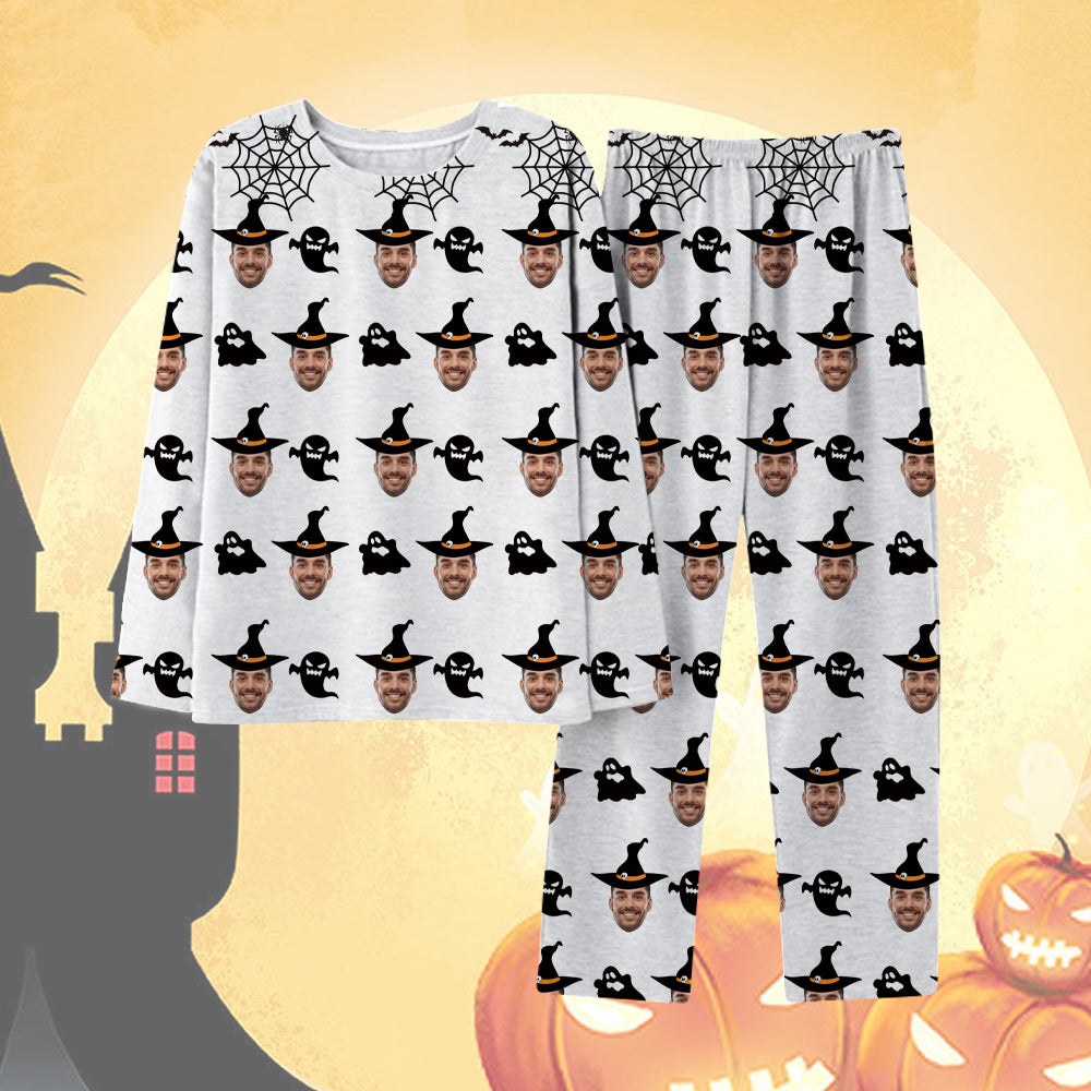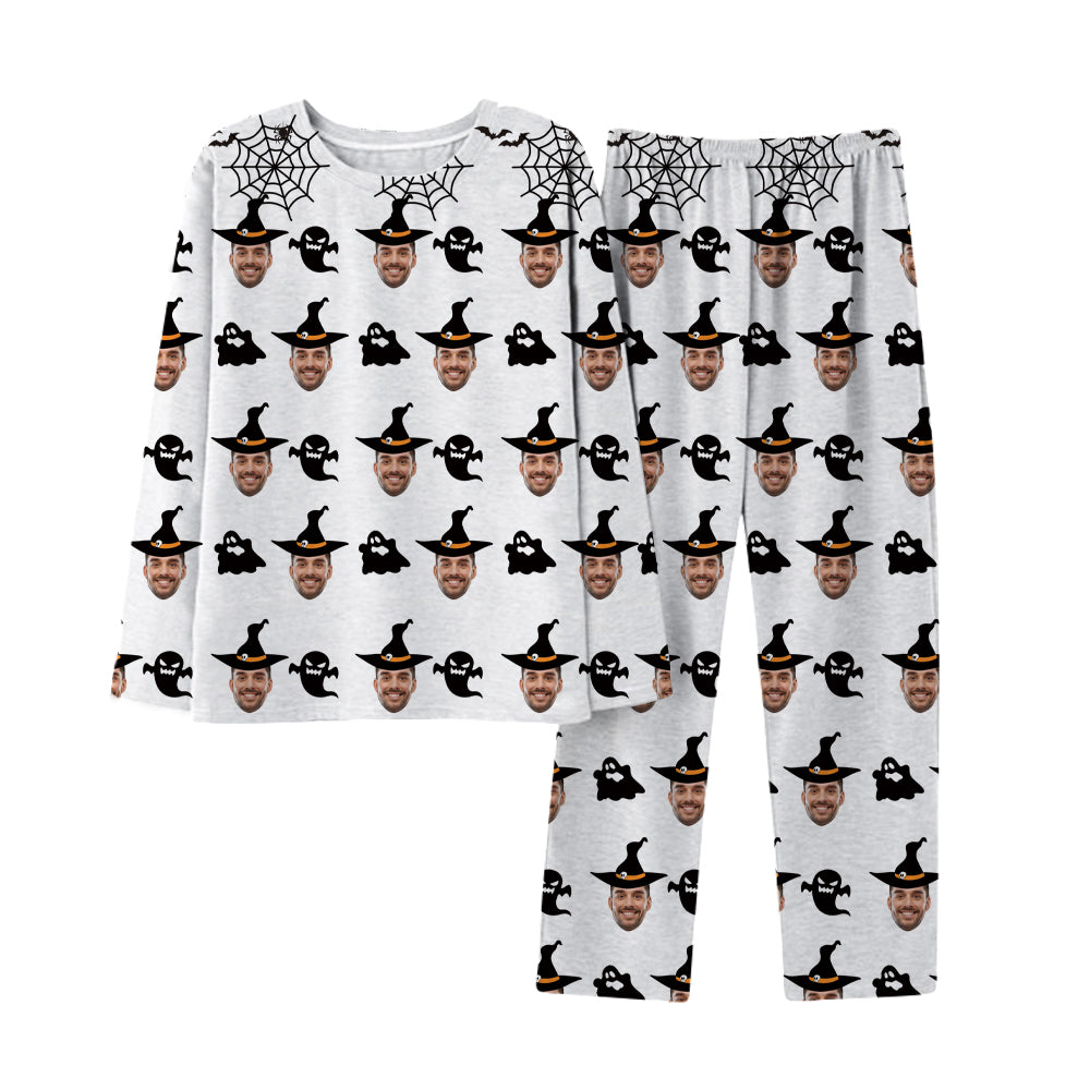 Halloween Custom Long Sleeve Pants White Pajama Set Men Women