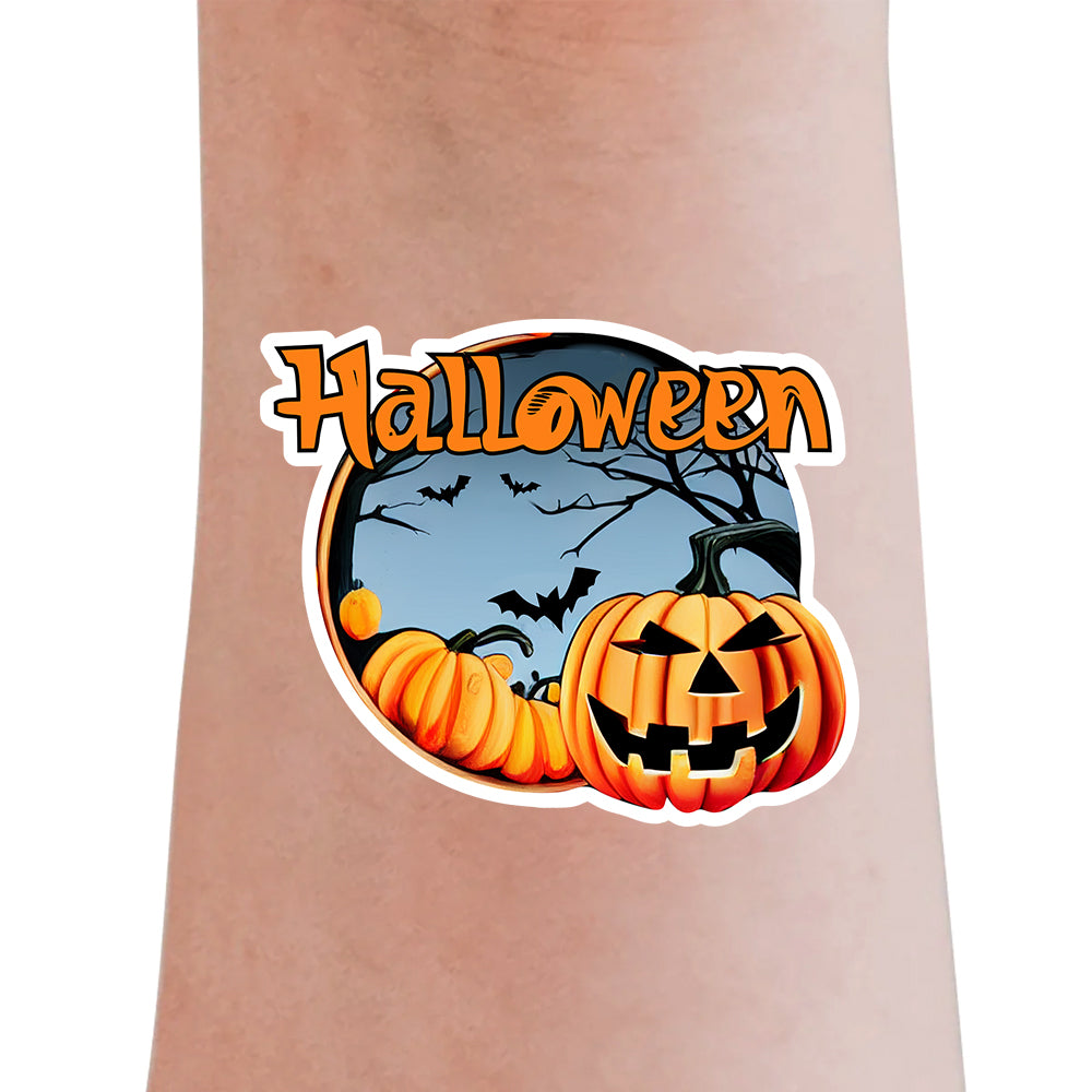 Halloween Tattoo Sticker Dark Night Pumpkin Bat Print